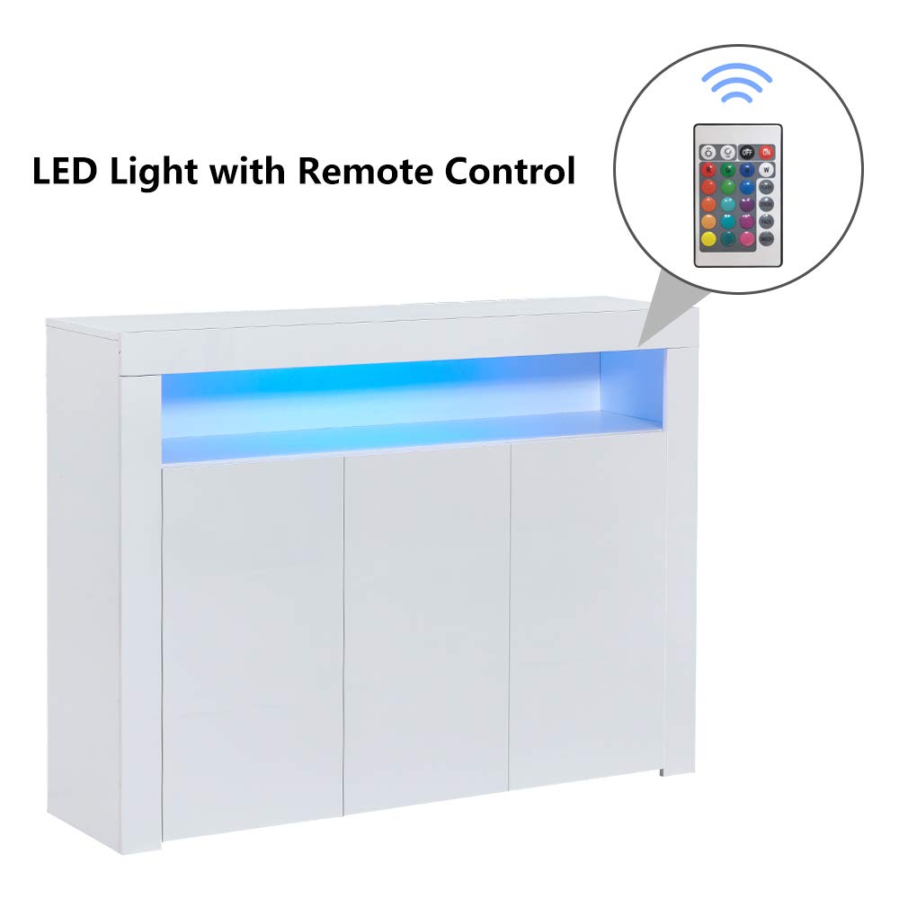 - Multipurpose LED Kitchen Cupboard Storage Buffet: the LED sideboard with multi-colour LED lights, which has 16 colors and 4 lighting effects such as strobe and fade, can change the color of the display through the remote control. The USB interface design can be free from the limitations of charging