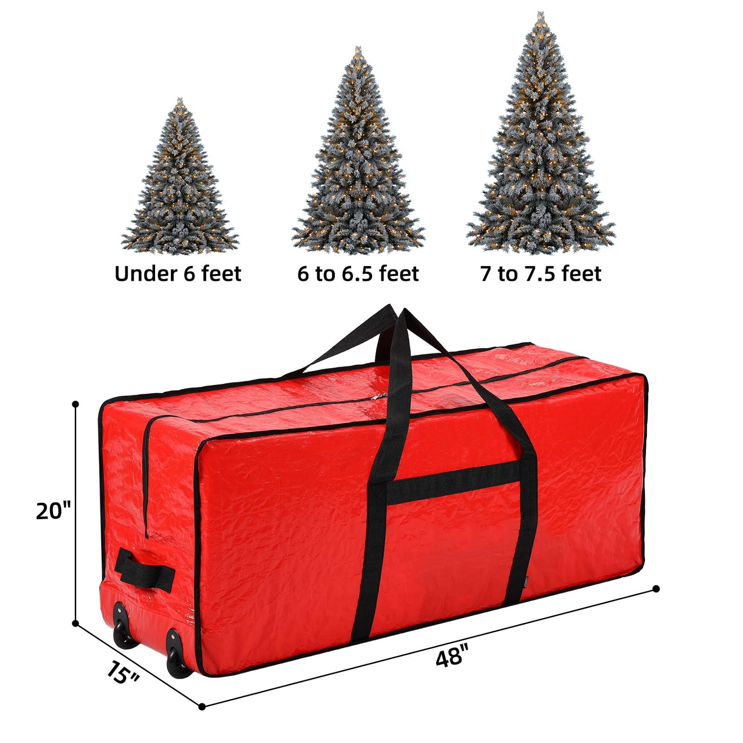 HOMEST Christmas Tree Storage Bag, Fits for 7.5 ft Artificial Xmas Tree, Zippered Christmas Tree Bag with Reinforced Carrying Handles and Wheels, Red (Bag Only)