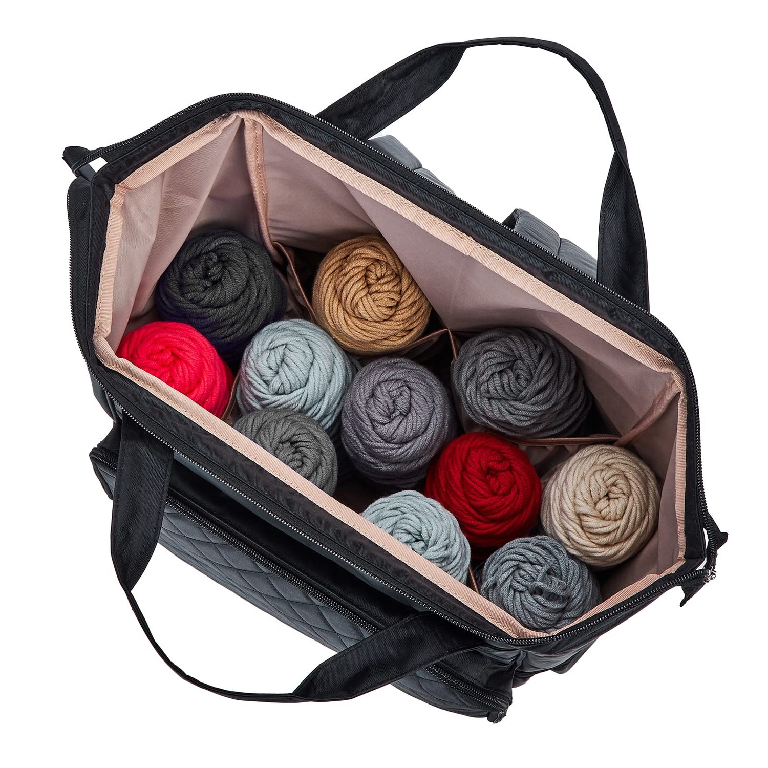 - FITS OVER 28 SKEINS - Fits over 28 skeins that weigh 3.5 oz. It is a roomy bag with lots of storage opportunities, great for traveling, a gift for knitting/crocheting friends (Bag Only)