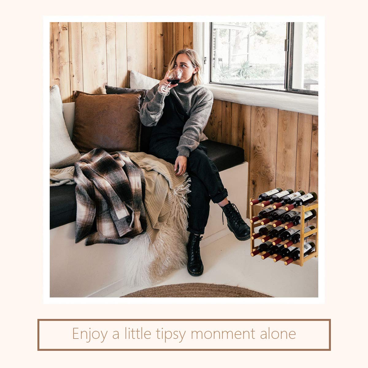 Homevany Bamboo Wine Rack, Sturdy and Durable Countertop Wine Storage Cabinet Shelf for Pantry - 4 Tiers 16 Bottle Wine Rack