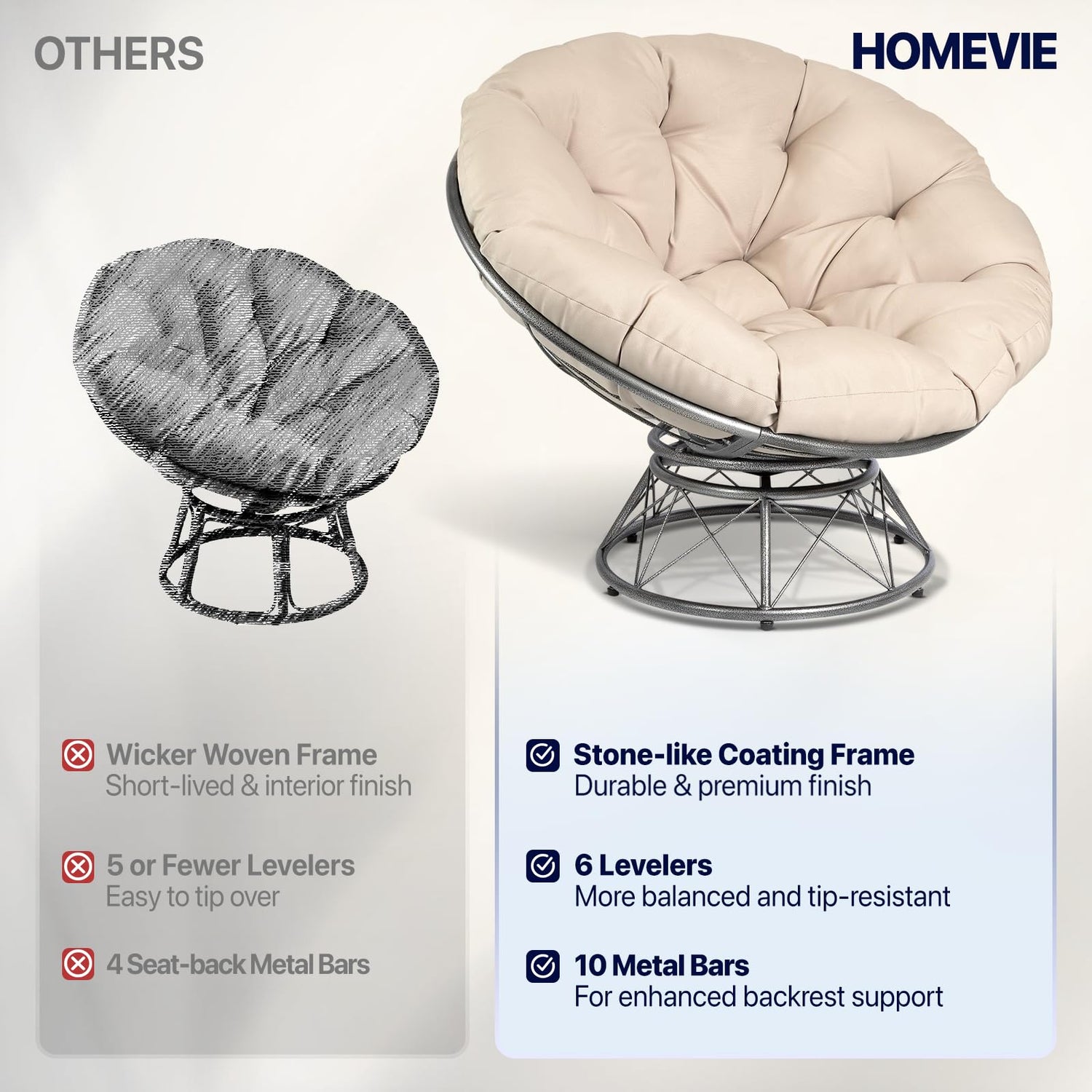 HomeVie 45'' Oversized Swivel Papasan Chair with Cushion and Frame β 7'' Thick Padded Seat + 1.75'' Support Pad, 450 lbs Capacity β Rotating Papasan Chair Frame β Suitable for Bedroom, or Reading Nook