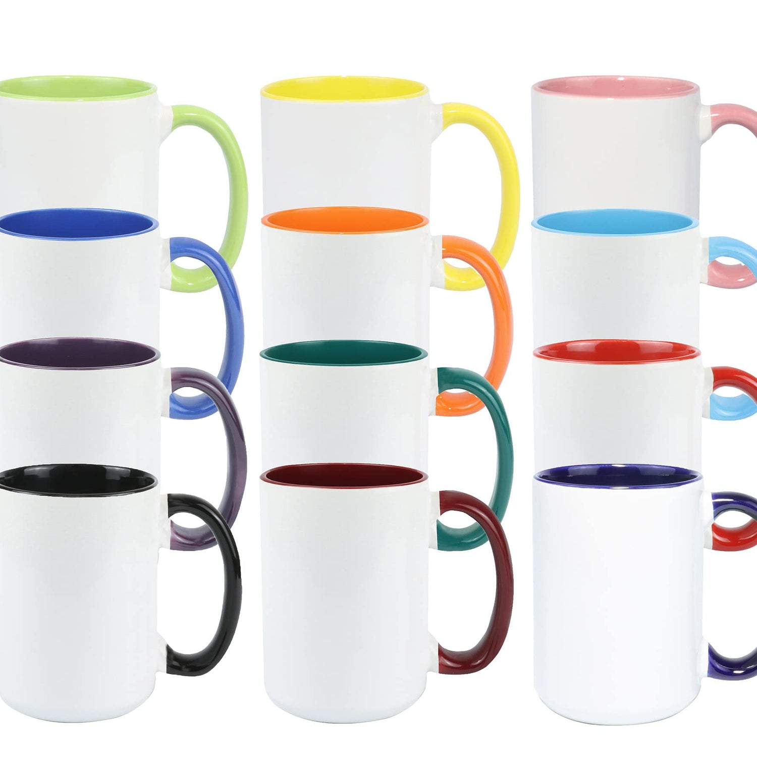 HomeVss Ceramic 15oz Sublimation Coffee Mug, 12 Assorted Colors, Case of 12