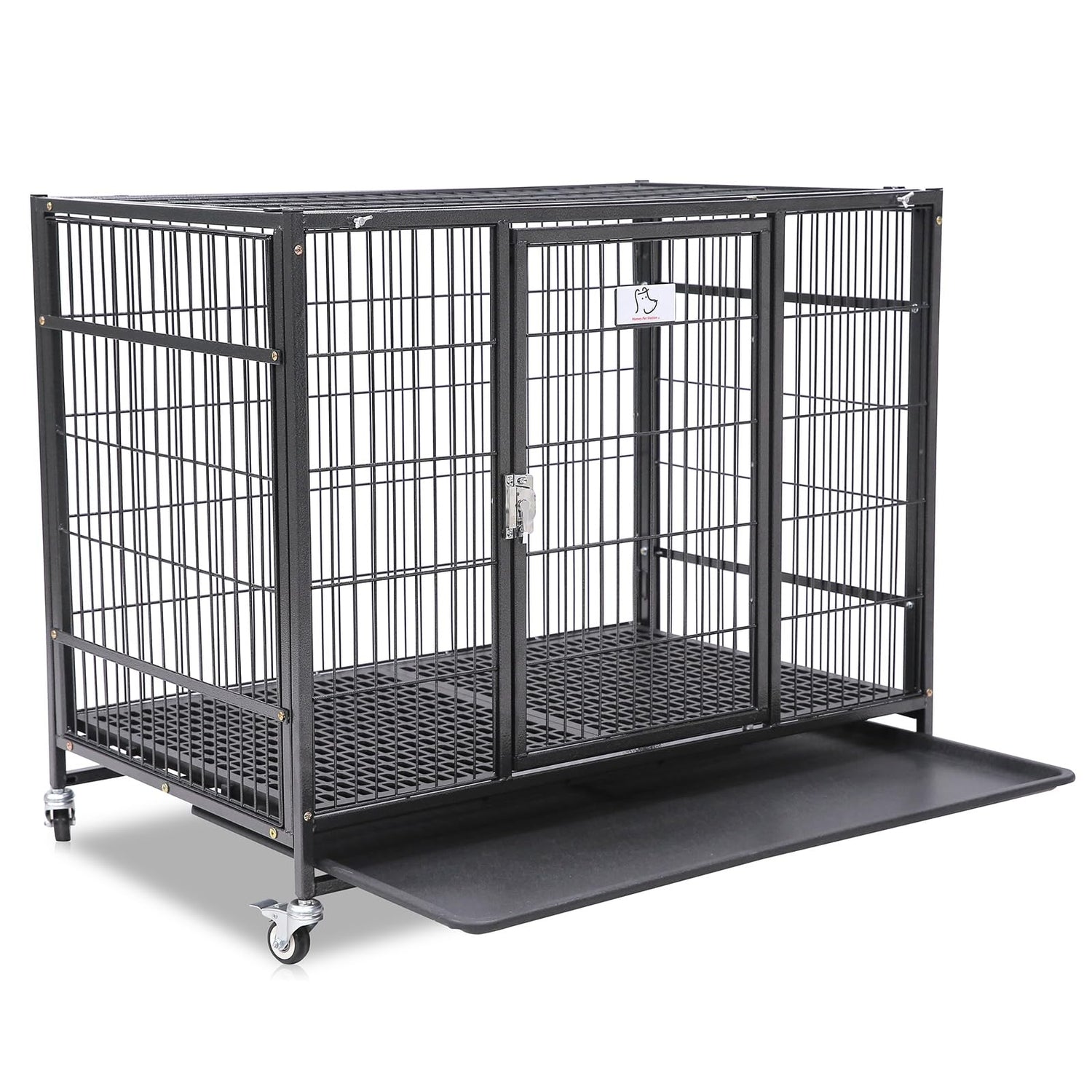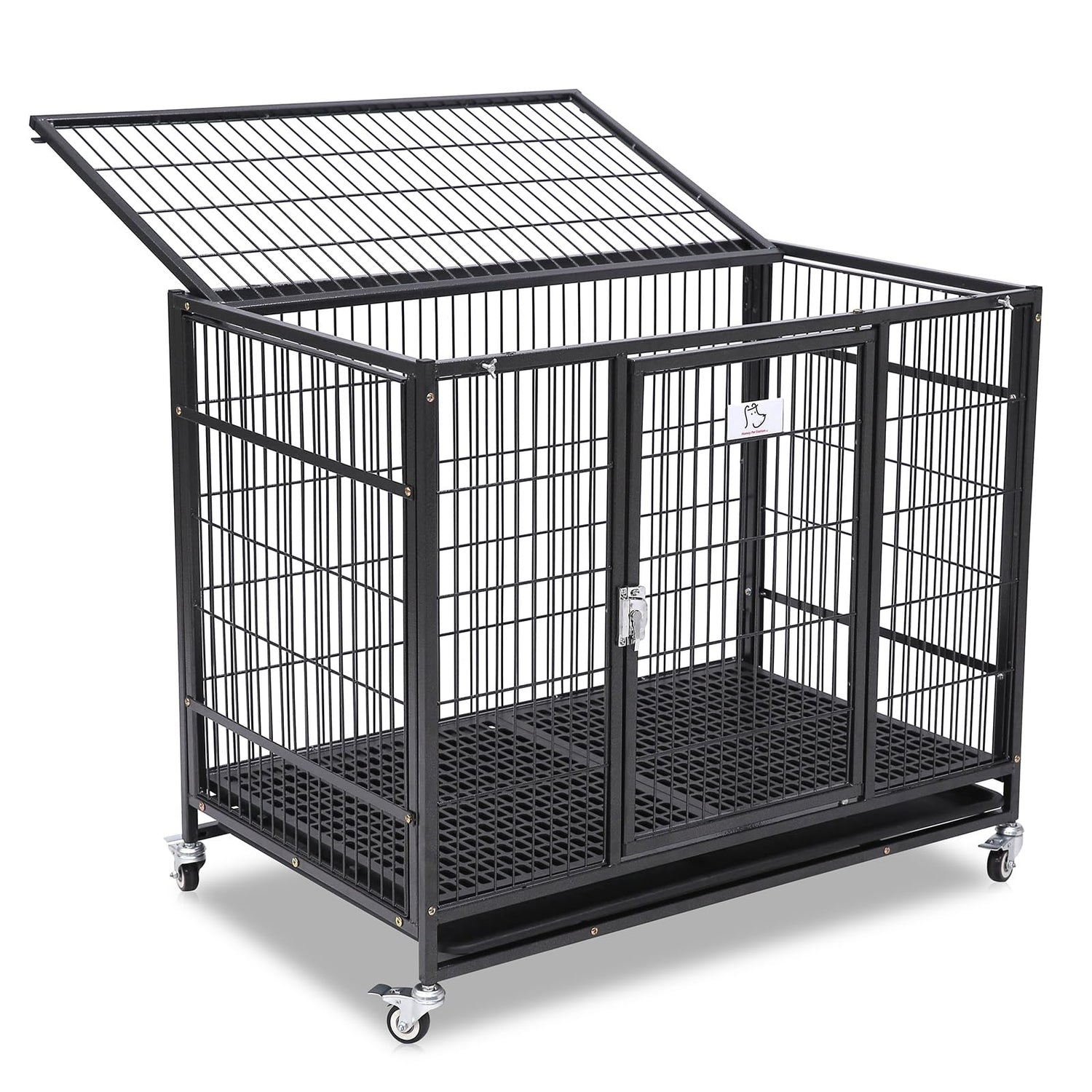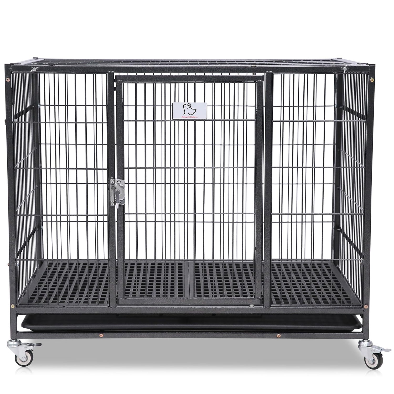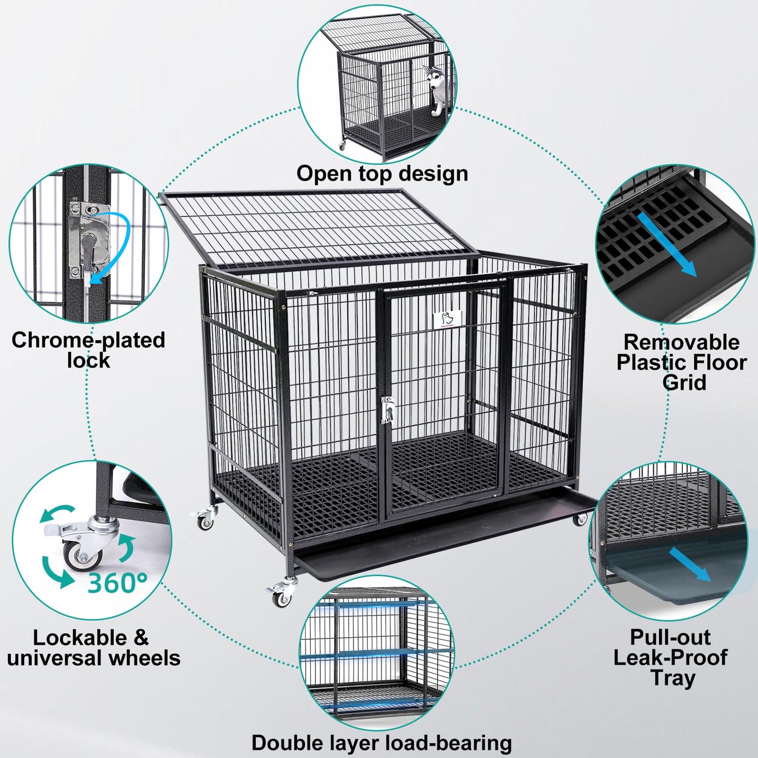 Homey Pet 37 inch Stackable Open Top Heavy Duty Dog Crate Cage for Medium Dog with Wheels and Removable Tray