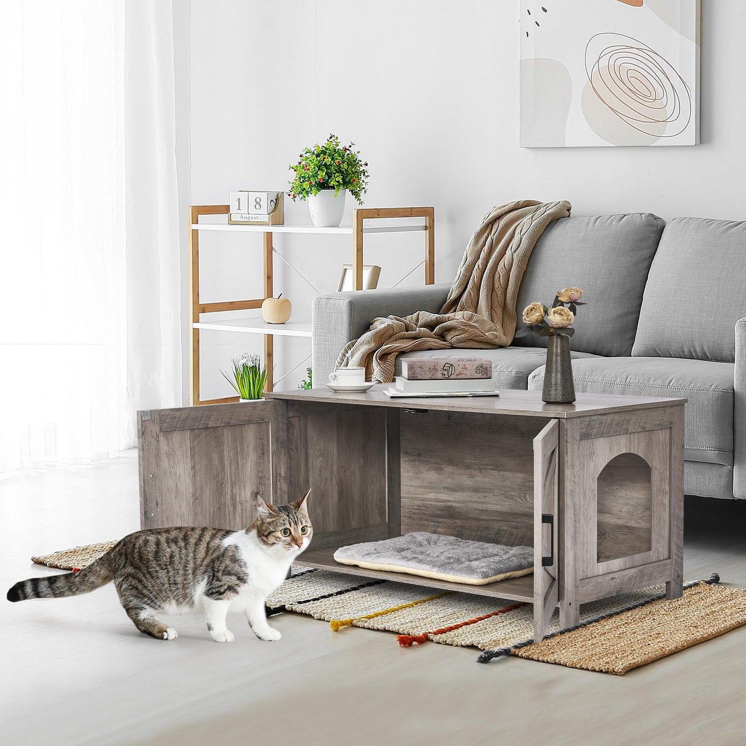 - Fits Most Litter Boxes: Sized 39.4” L x 19.7” W x 19.7” H, The cat furniture is big enough for most of litter box and avoid litter scattering.