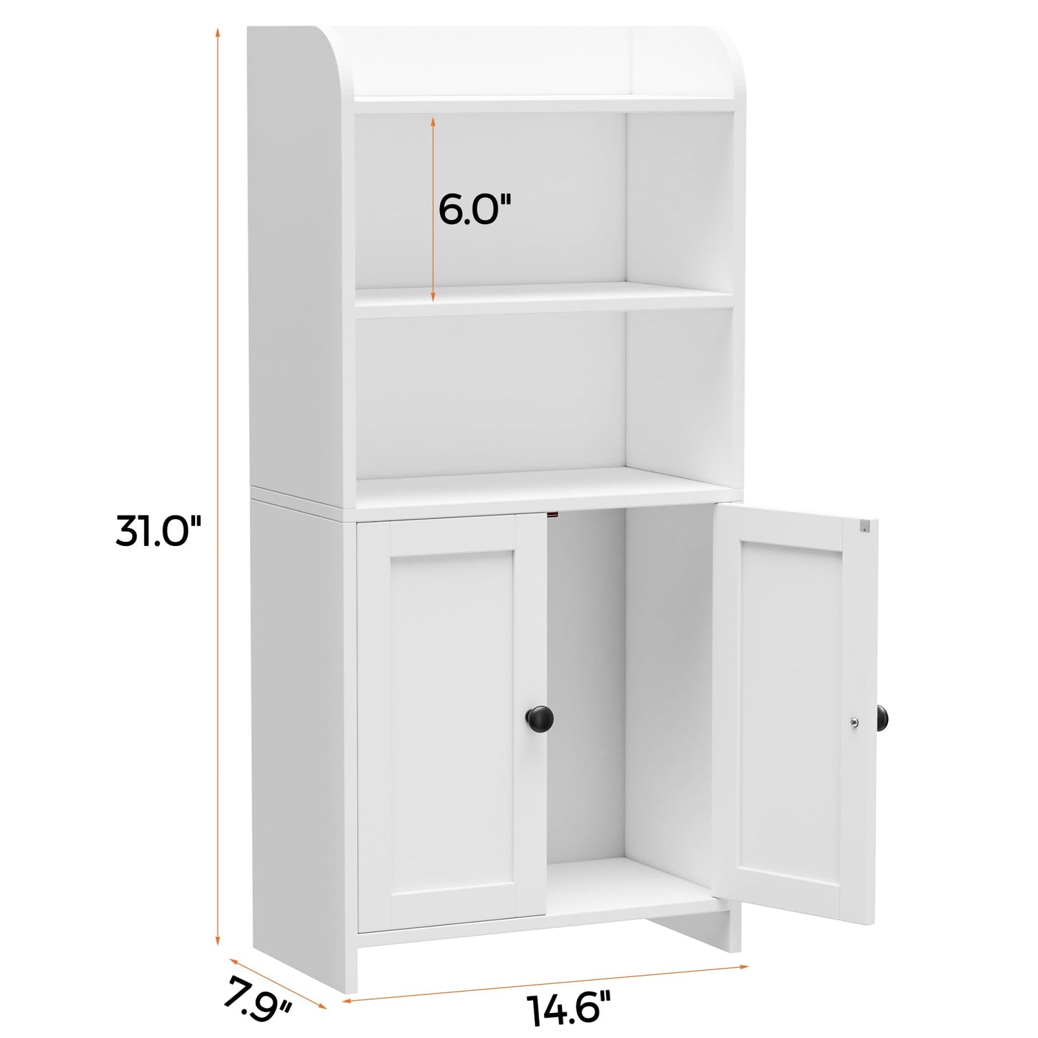 Homhedy Small Bathroom Storage Cabinet, Freestanding Toilet Paper Storage with 2 Doors and Shelves, Bathroom Organizers and Storage for Small Spaces, Laundry Room, 7.9" D x 14.6" W x 31" H, White