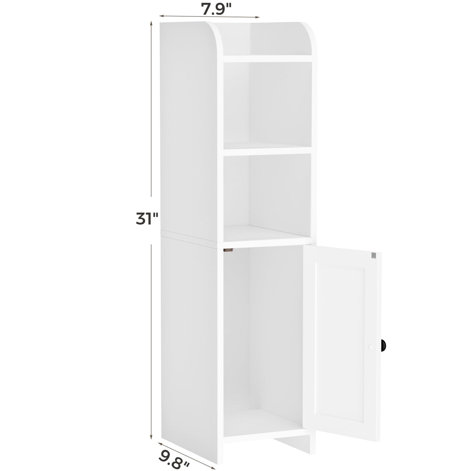 Homhedy Small Bathroom Storage Corner Floor Cabinet with Door and Shelves, Beside The Toilet Paper Stand for Skinny, Narrow Toilet Paper Cabinet, 9.8" D x 7.9" W x 31" H, White