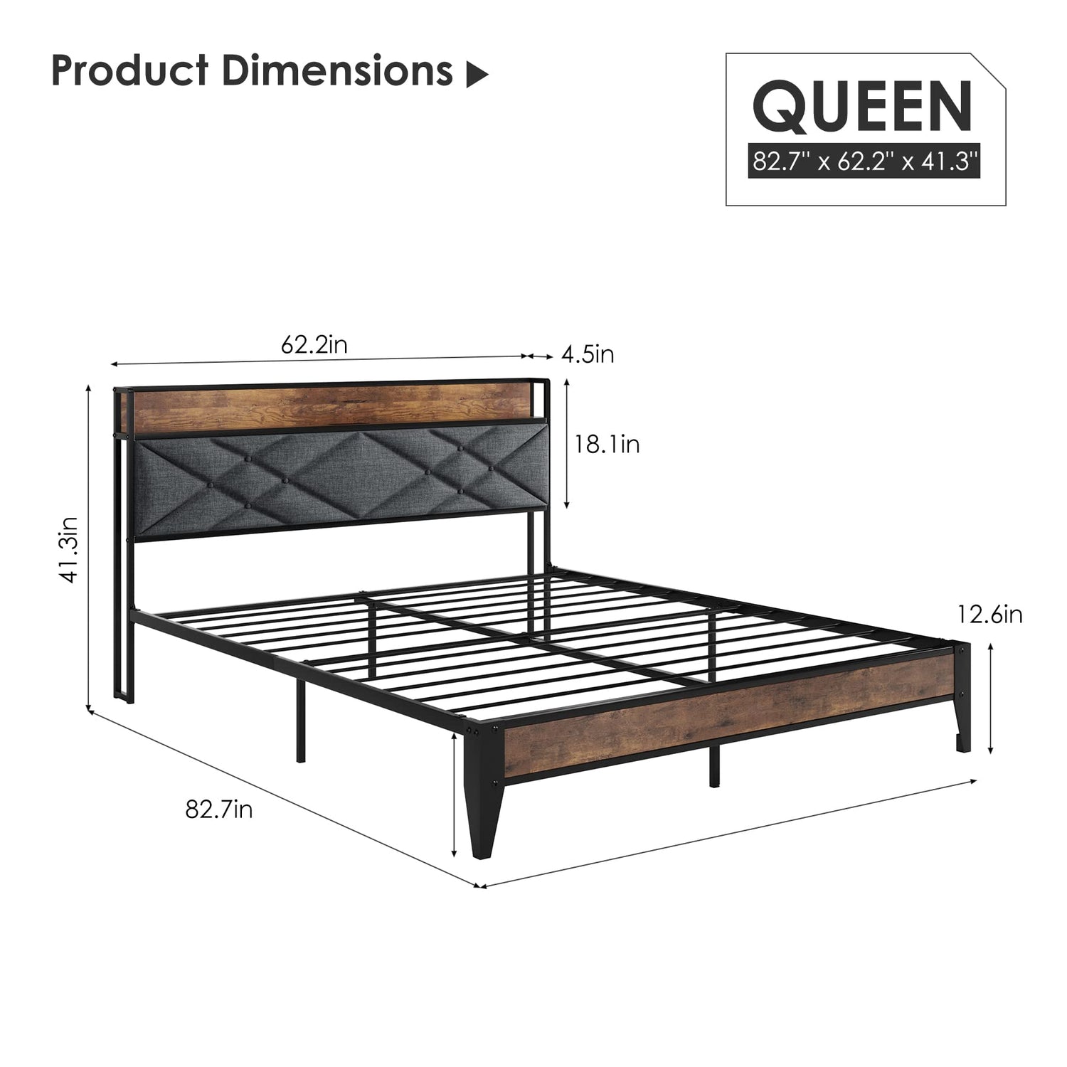 Worried about storage? This platform bed stands approximately 11 inches off the floor, providing ample space for easy cleaning and storage solutions for limited spaces. Plus, the design allows you to forgo a box spring—simply place your mattress directly on the sturdy slats, accommodating heights from 8 to 14 inches.