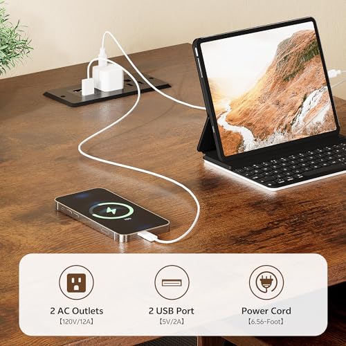 - [L Shaped Standing Desk with Power Outlet] This 47"×29" standing l shaped desk offers ample space to accommodate two monitors, a printer, and other office supplies. The built-in charging station keeps your phones, tablets, and other devices powered, eliminating cable mess and keeping you connected all day.