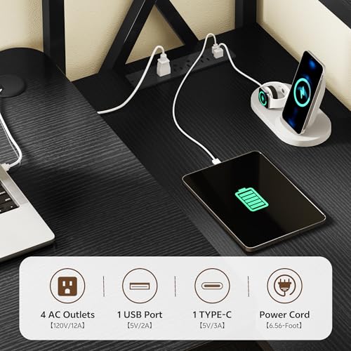 - Charging Port: Stay charged without tangled cords. Our l shaped standing desk features a built-in charging station, including 4 AC outlets, 1 USB port and 1 Type-C port. Power up your phones, laptops, tablets and accessories at the same time. No extra adapters required.