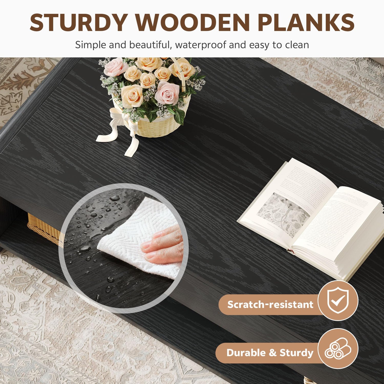 - Sturdy & Rounded Design: Our reliable metal lift structure ensures smooth lift-top adjustments. The durable engineered wood material enhances the longevity of the coffee table. Plus, the gently curved corner eliminate worries about bumps