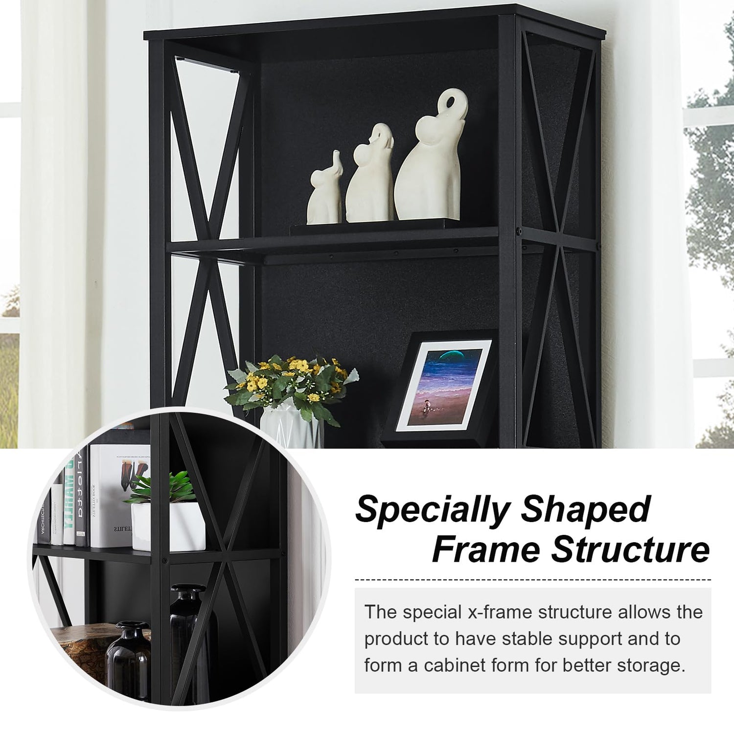 - [Bookshelf With Cabinet Design]: The tall bookcase has a back panel design than the standard open bookcase, which makes the industrial bookshelf more integral. It also allows the freestanding bookshelf to be placed off the wall without worrying about items falling off the back, making it more practical and more aesthetically pleasing.