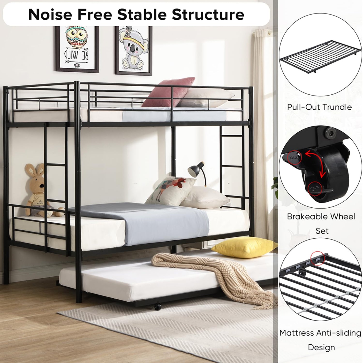 - 【Extra Sleeping Space】With a trundle bed on casters, our bunk bed provides extra sleeping space for children sharing a room, entertaining overnight guests, or just giving your child a space to spend with friends