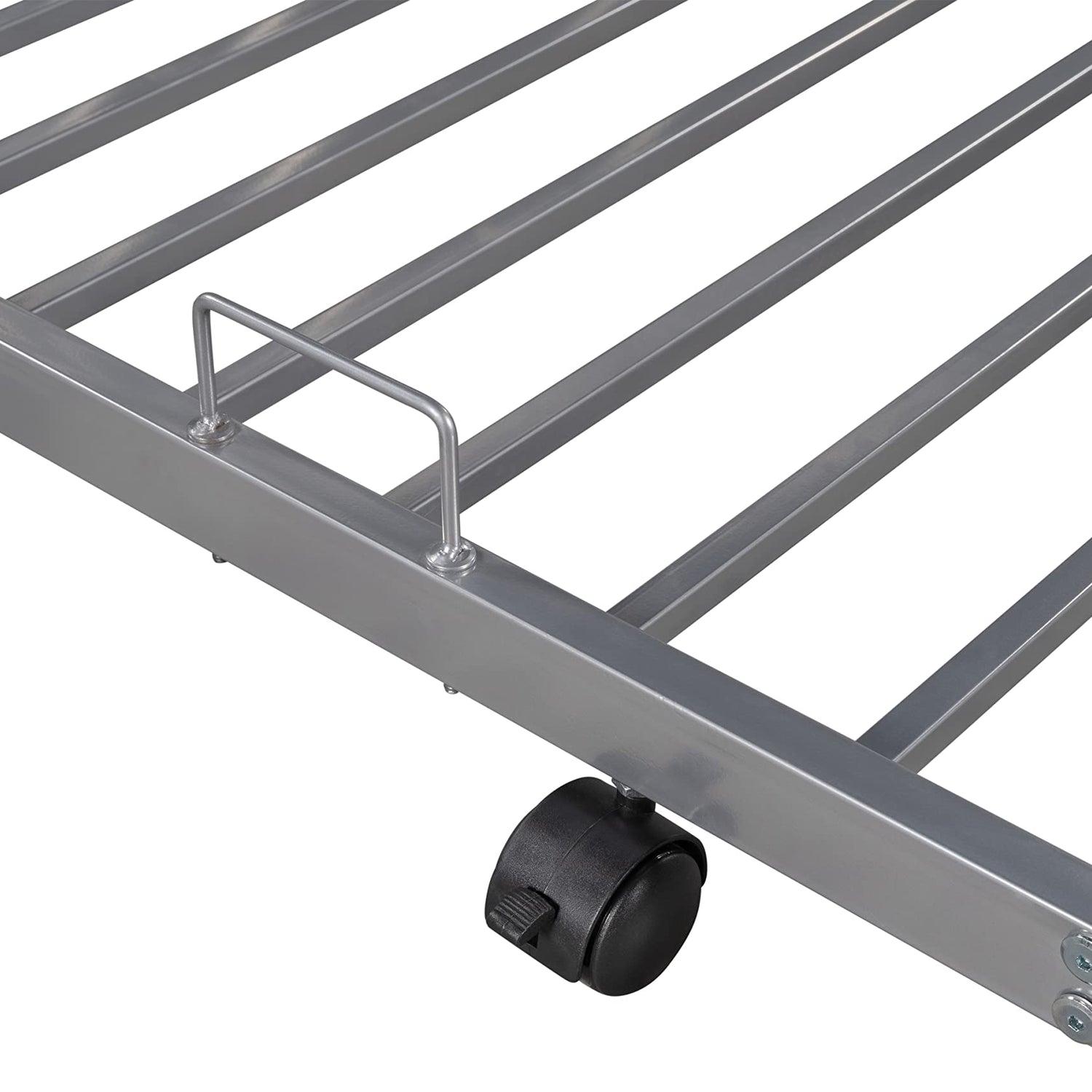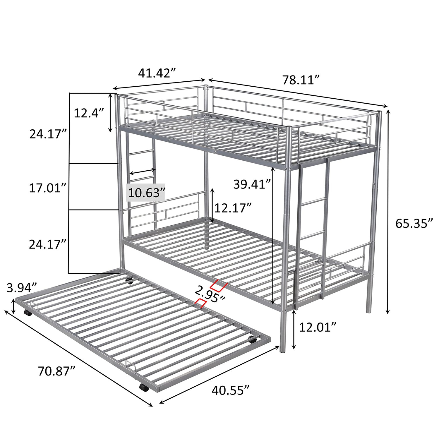 - Space Saving Bed Frame :With Pull out trundle bed,this twin-over-twin metal bunkbed is great in saving space for compact place.Without cumbersome spring box, trundle under the lower bunk bed gives you extra sleeping space.Very ideal for school dormitory ,company dorm room