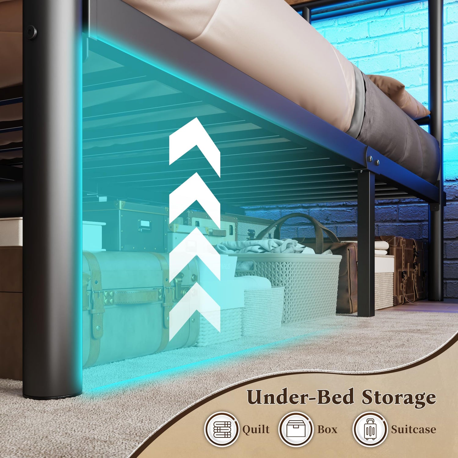 - 【Romantic & Functional LED Lighting】Enhance your bedroom ambiance with the built-in LED lights on this classic bed frame. Featuring 20 color modes and a 15-meter control range remote, this bed frame allows you to easily customize lighting for relaxation, romance, or entertainment. At night, the LED lights also provide soft illumination to help you navigate safely and avoid tripping in the dark.