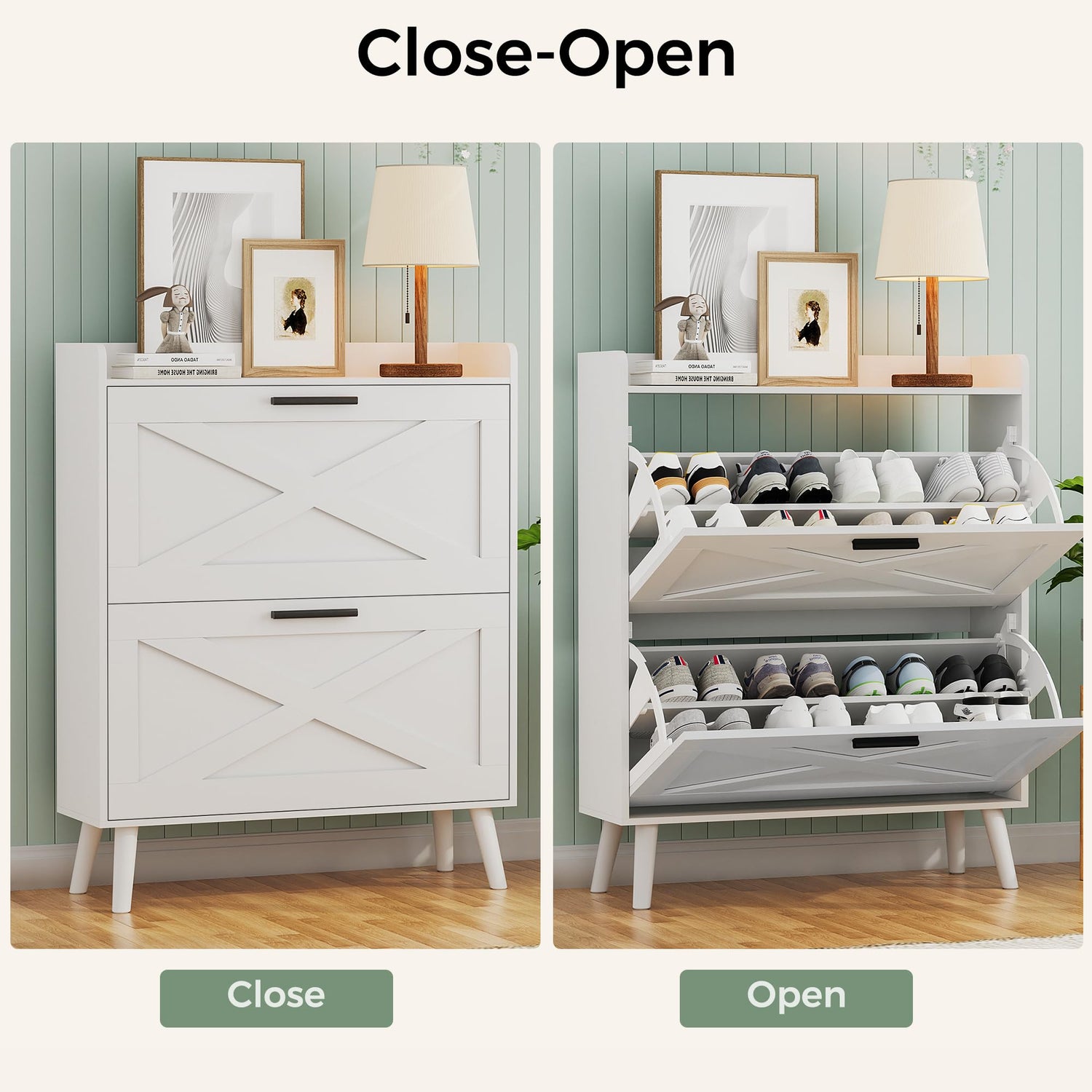 - Flip Drawers Shoe Cabinet: Equipped with two flip drawers, this modern cabinet allows easy access to your shoes while keeping them neatly hidden away. It features a removable divider in each compartment, you can easily adjust the space in the shoe compartments by moving or taking away the dividers