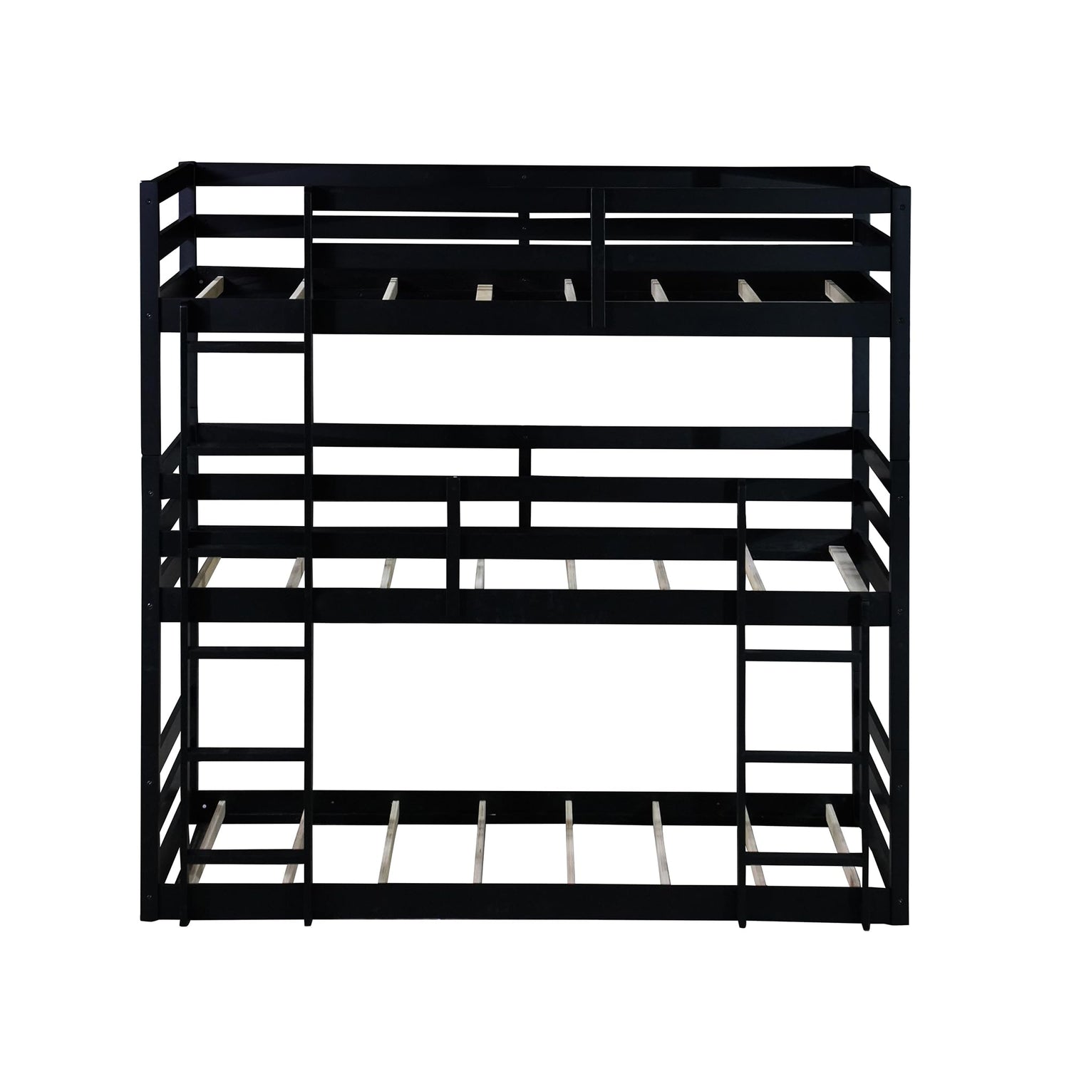 Hommoo Triple Bunk Bed Twin Over Twin Over Twin Wood Bed Frame Convertible Loft Bed for 3 Teens Adults with Ladder and Guardrail for Small Space Bedroom Dorm Black