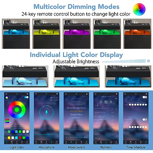 - 【APP & Remote Control RGB LED Light】The night stand black supports APP and remote control. RGB LED lights can be remotely adjusted with multiple light colors, brightness and multiple modes (Multicolors, Flash Style, Music, Mix, Timing), to adjust your favorite background color at any time.