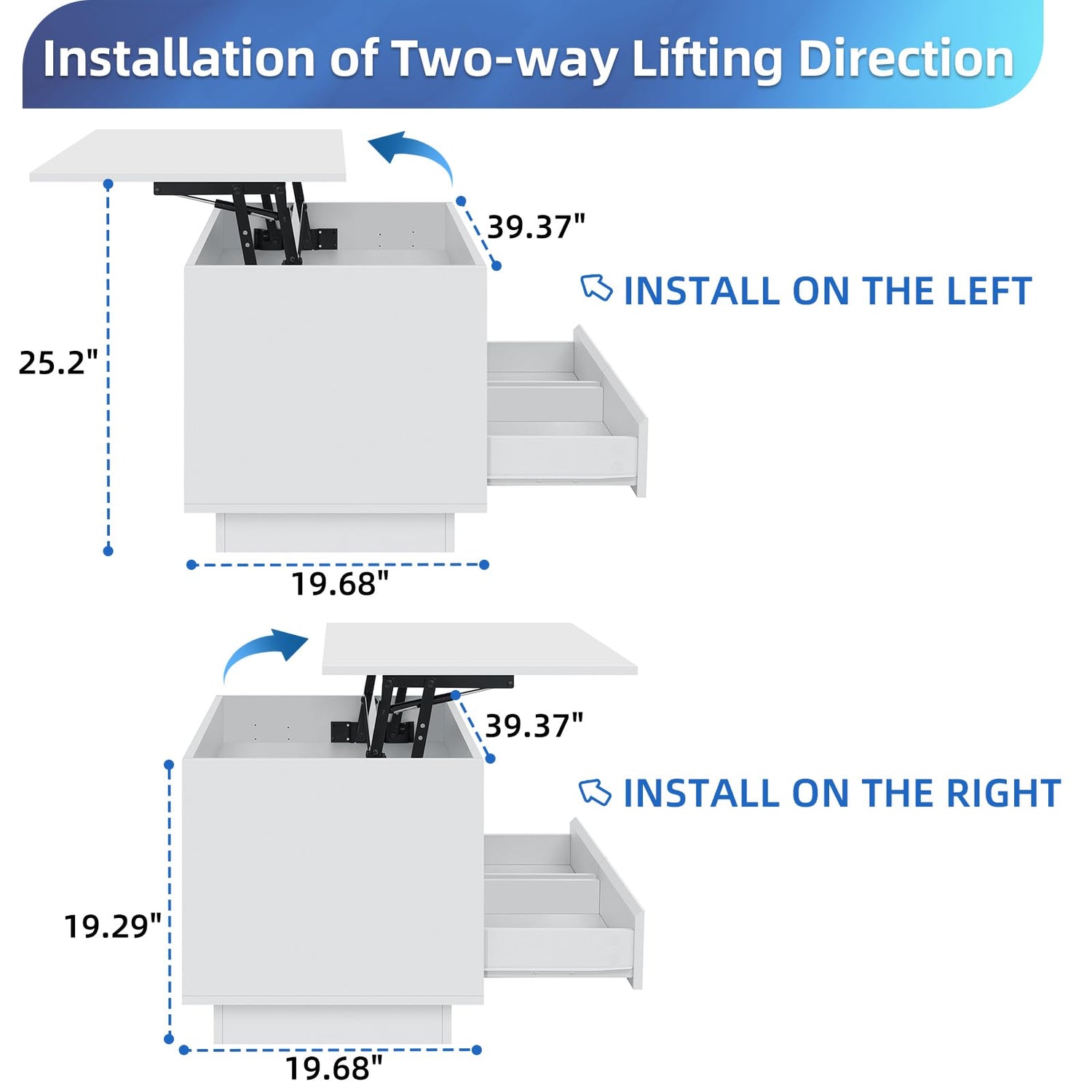 - Lift Top Coffee Table: Featured top grade gas struts that allow for effortless lift and lower of the table top from 19.29" to 25.2", giving you a versatile surface that can accommodate all occasions. The innovative cut-out design enables seamless top lifting, instantly transforming your living space into a customized workspace or dining area.