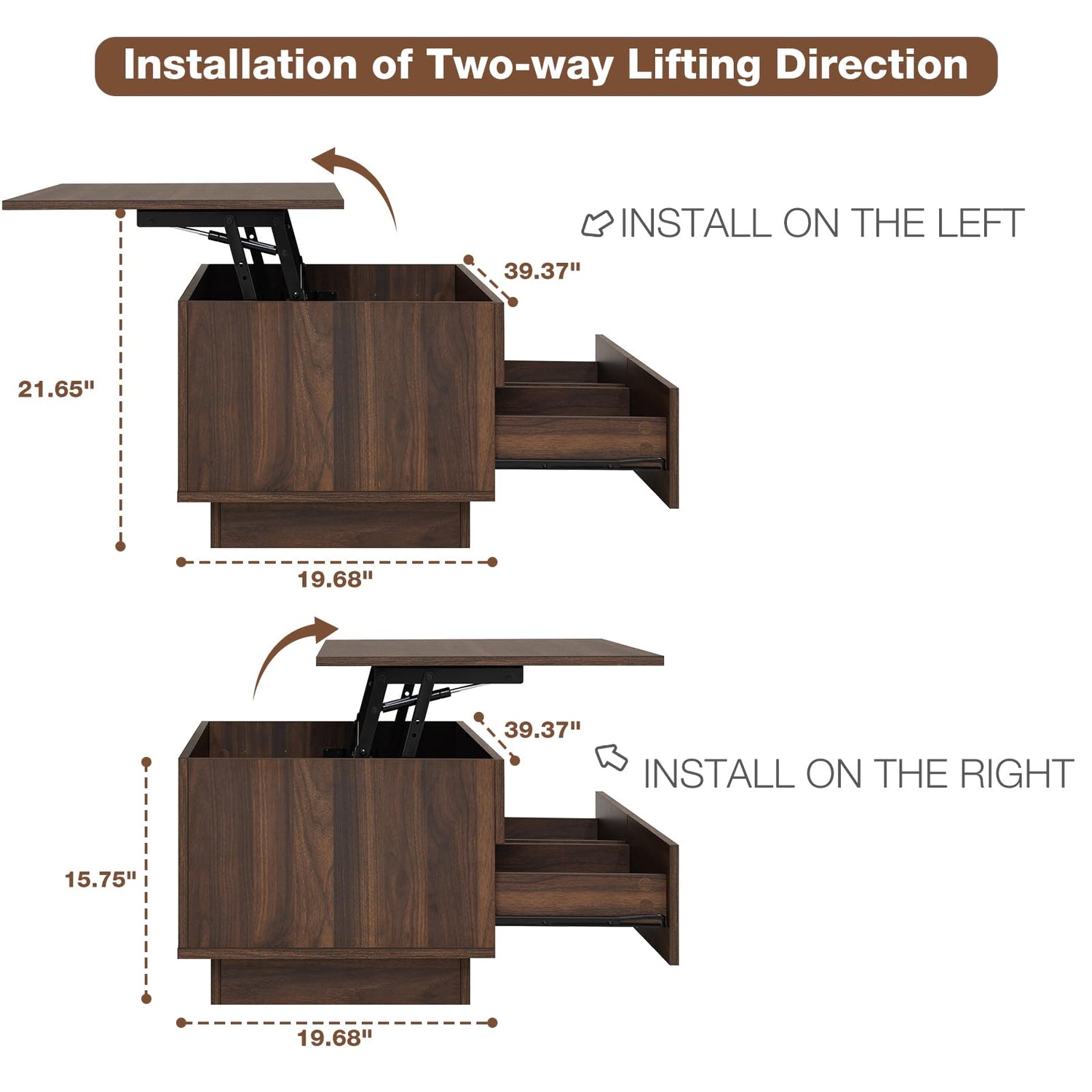 - 【Walnut Lift Top Coffee Table】Built with superior quality gas struts for effortless lifting and lowering of the table top ranging from 15.75" to 21.65". Its unique cut out design facilitates easy top lifting, transforming your living space into a personalized workspace or dining spot.