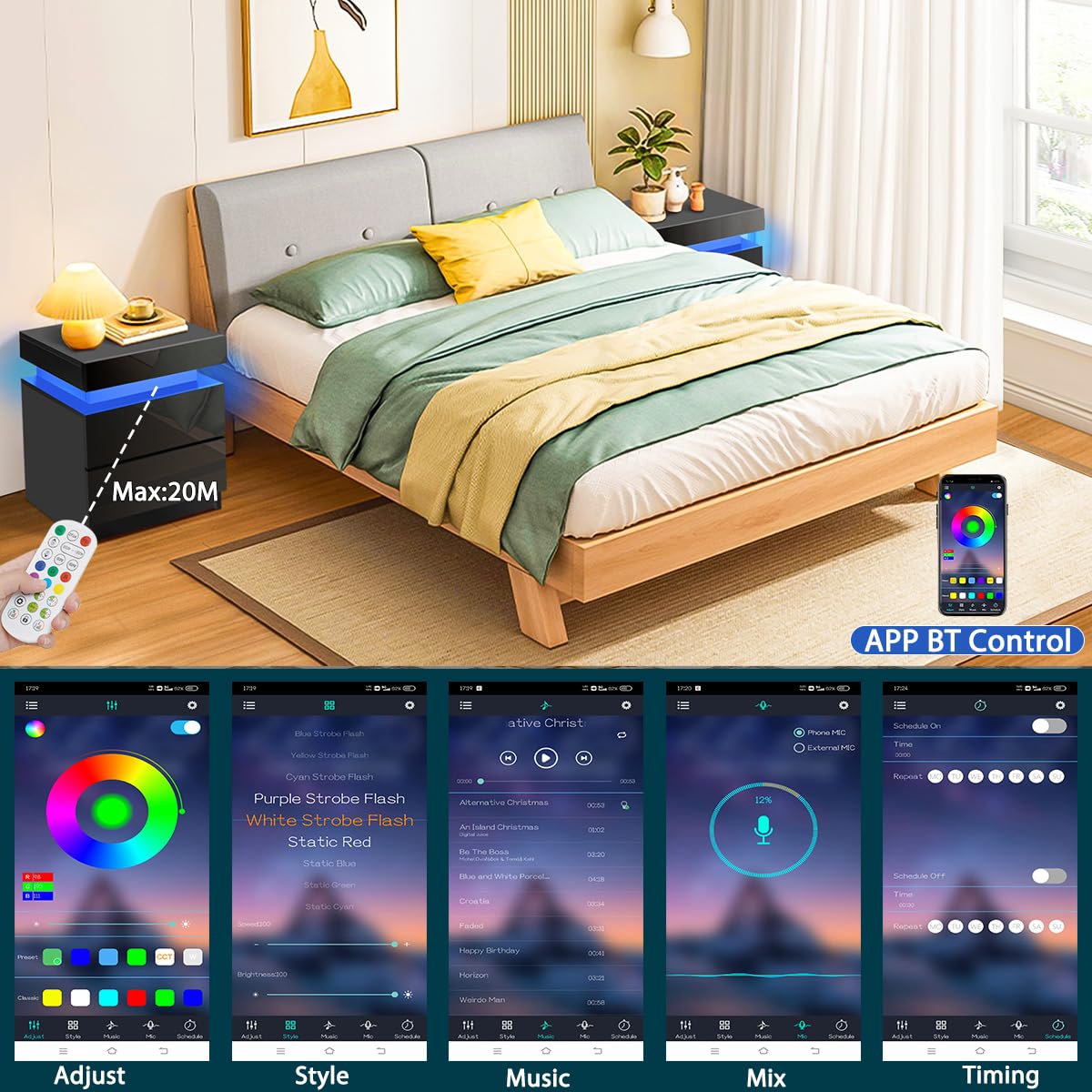 - 【APP / Remote Controlled Lighting】 The black nightstand for bedroom is equipped with over 60,000 RGB colors to choose (DIY, support for voice control), 4 flashing modes, music rhythm, brightness adjustment and timing fonction, can be adjusted by remote control and APP.