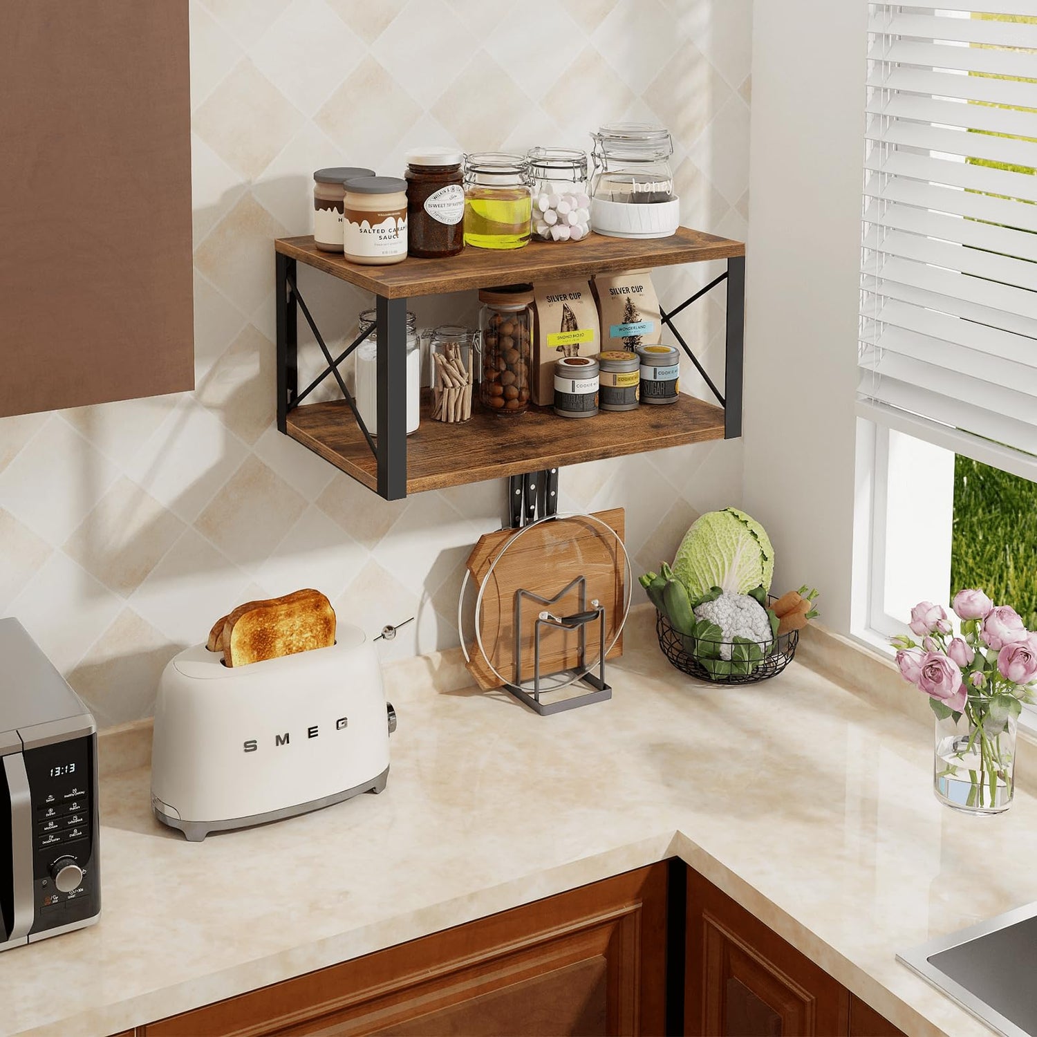 Homode Floating Nightstand, Wood Floating Bedside Table with Cable Hole, 2 Tier Wall Mounted Nightstand, Hanging Night Stand Wall Shelves for Bedroom Living Room Bathroom Kitchen, Rustic Brown