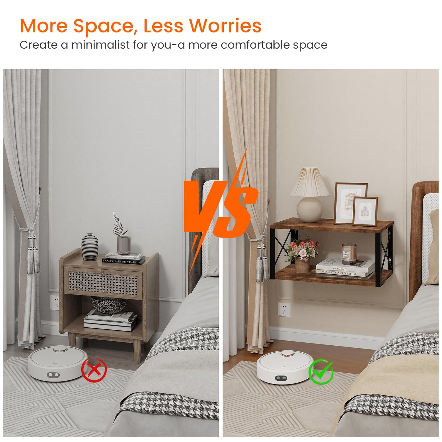 - Cleaning & Installation Ease: The floating design eliminates hard-to-reach corners, making cleaning a breeze. With simple installation and no need for complex tools, the floating bedside table is easy to create a tidy and stylish bedroom