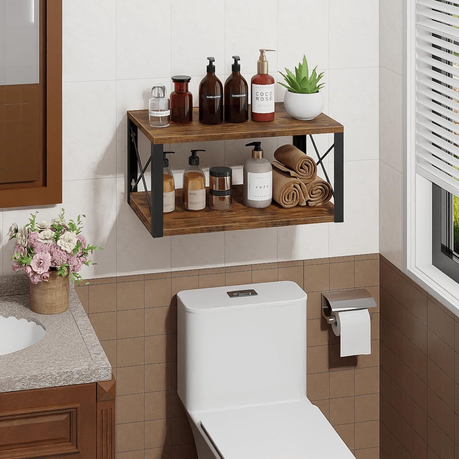 - Versatile Design: The floating shelves offer a range of applications. They serve as practical bathroom shelves for storing essentials over the toilet, stylish hanging nightstands in the bedroom, efficient spice racks for better kitchen organization, or elegant display shelves in the living room, enhance your home decor while adding a touch of sophistication and elegance to any space