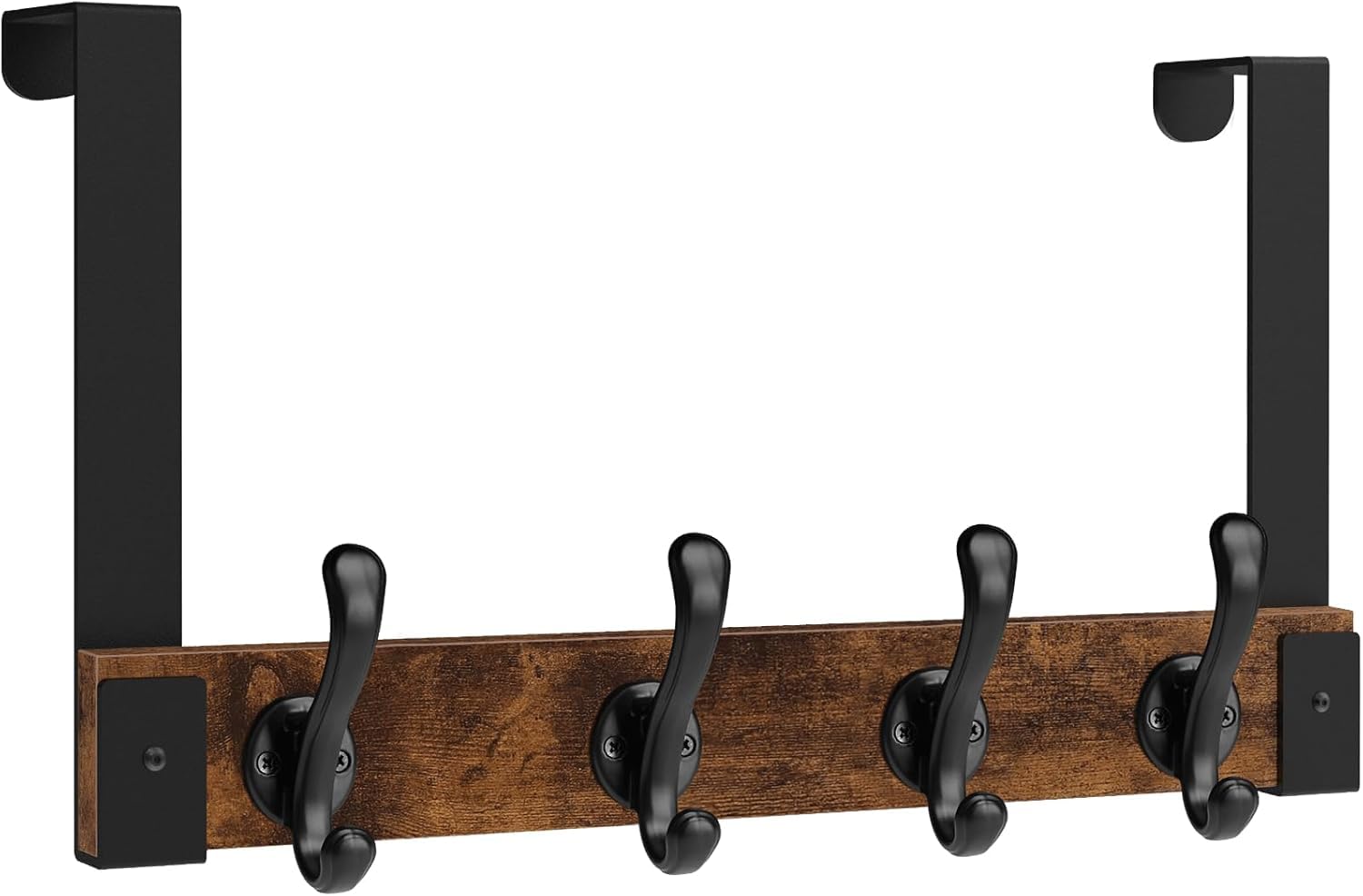 Homode Over The Door Hooks Heavy Duty, Wood Over Door Hanger Hook, Over Door Towel Rack with Coat Hooks for Hanging Towels Clothes Hats Bags, Back of Bathroom Door, Rustic Brown Black