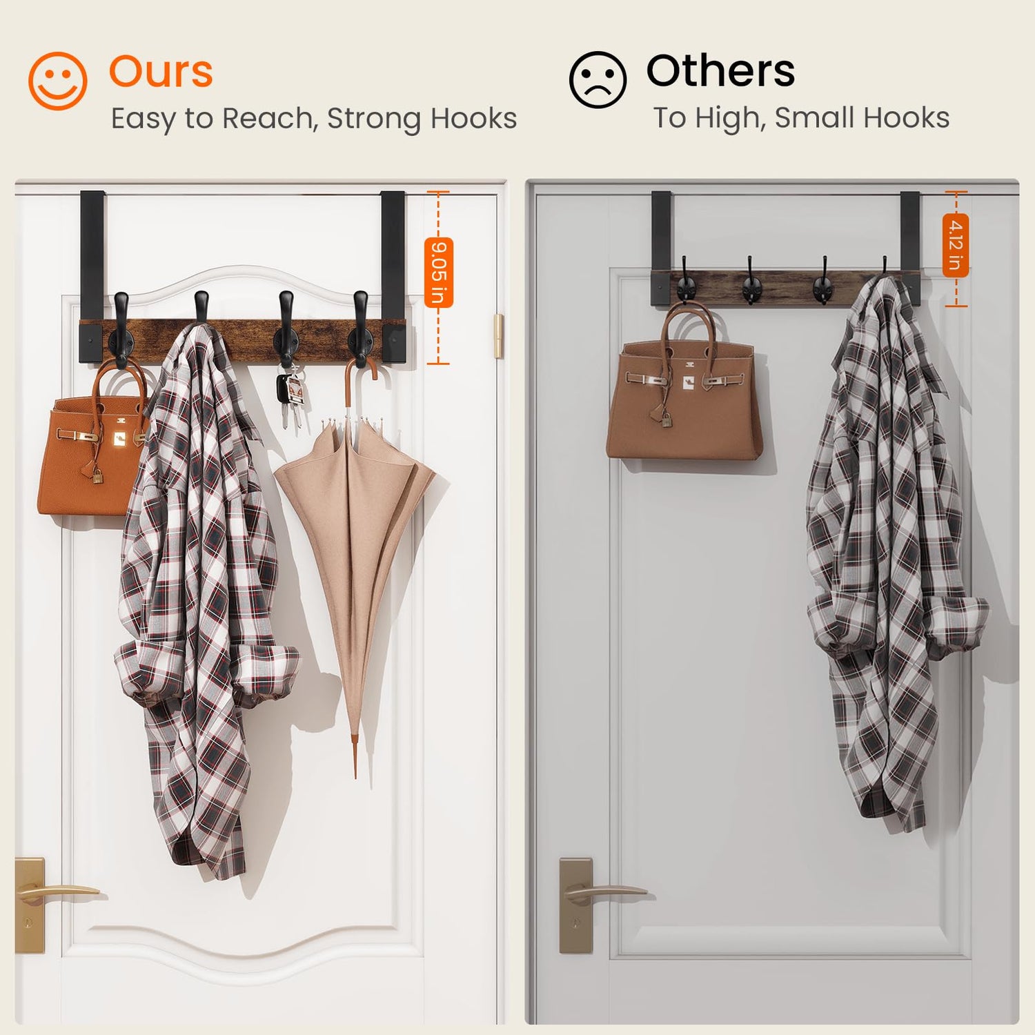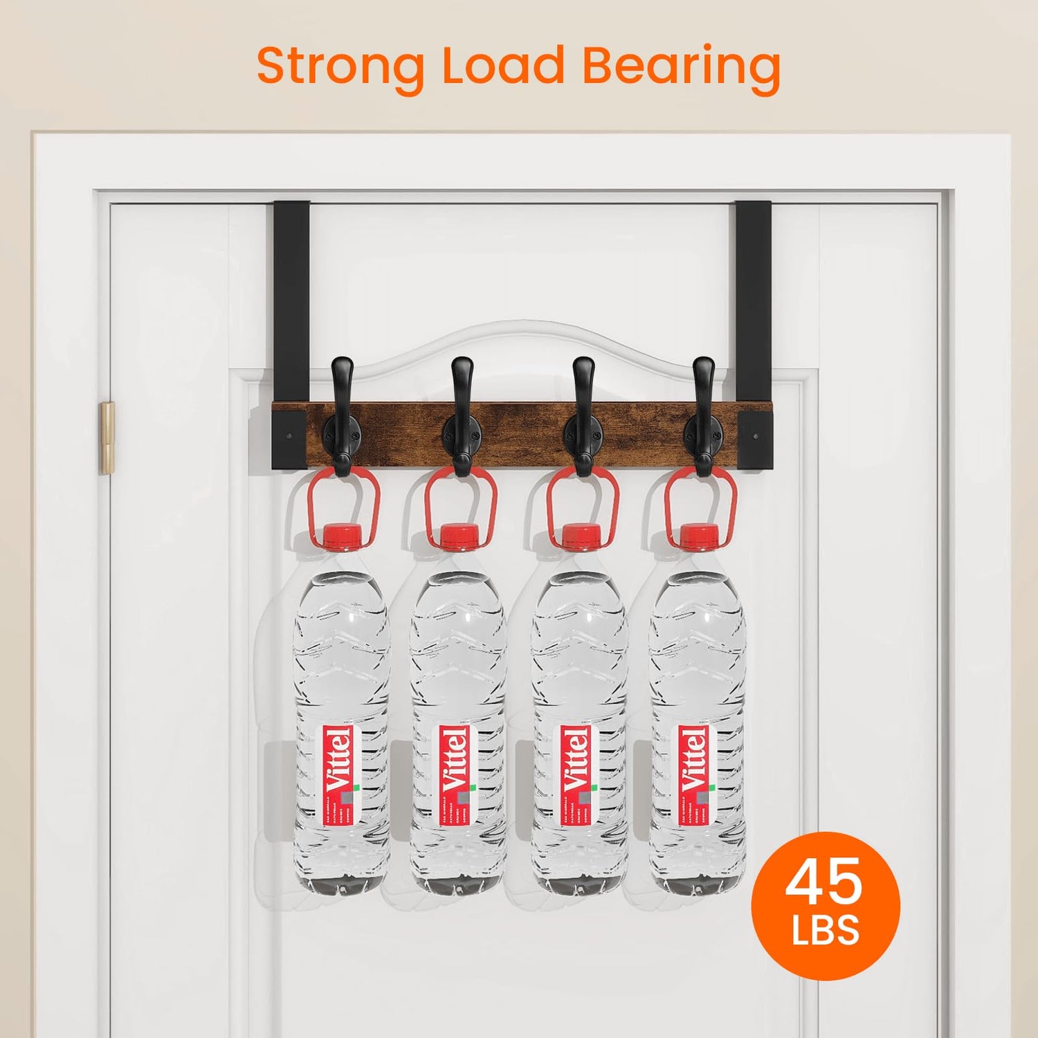 - Sturdy & Durable Construction: Crafted with premium quality particleboard wood and durable strong metal hooks and 0.08 inches thick high quality metal brackets, this over door hook hanger is stronger than ordinary door hooks, with a maximum load capacity of 45 LB, which is designed to hold heavy coats, bags, robes and more without bending or breaking.