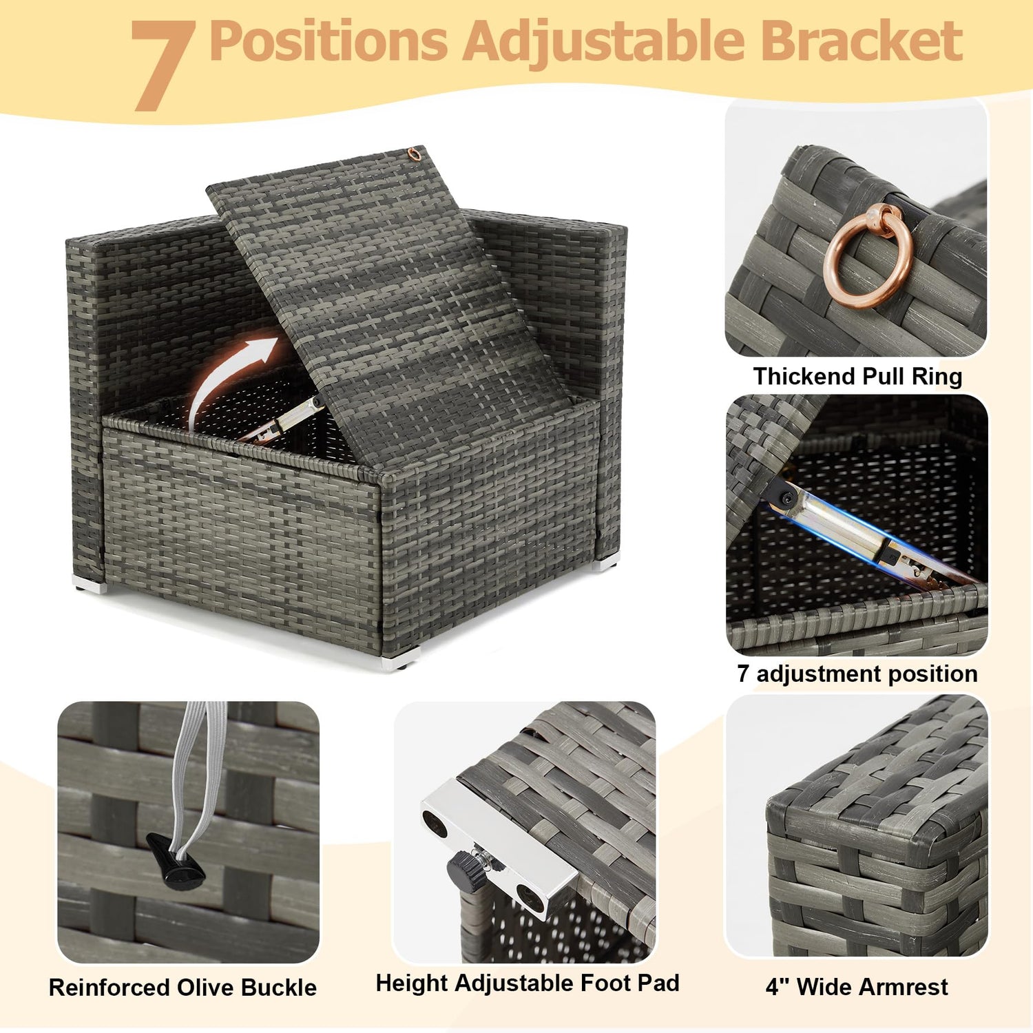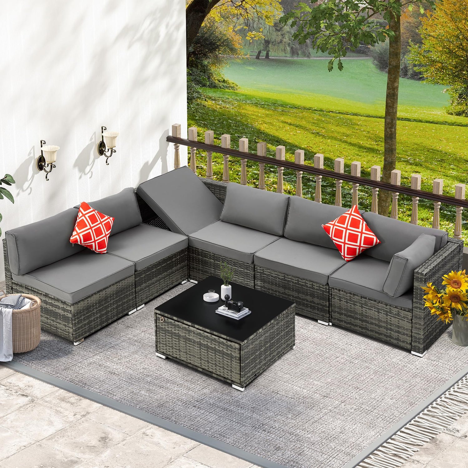 HOMREST 7 Piece Patio Furniture Set with Adjustable Bracket All-Weather Wicker Conversation Set with Coffee Table for Porch Garden Backyard (Gray)
