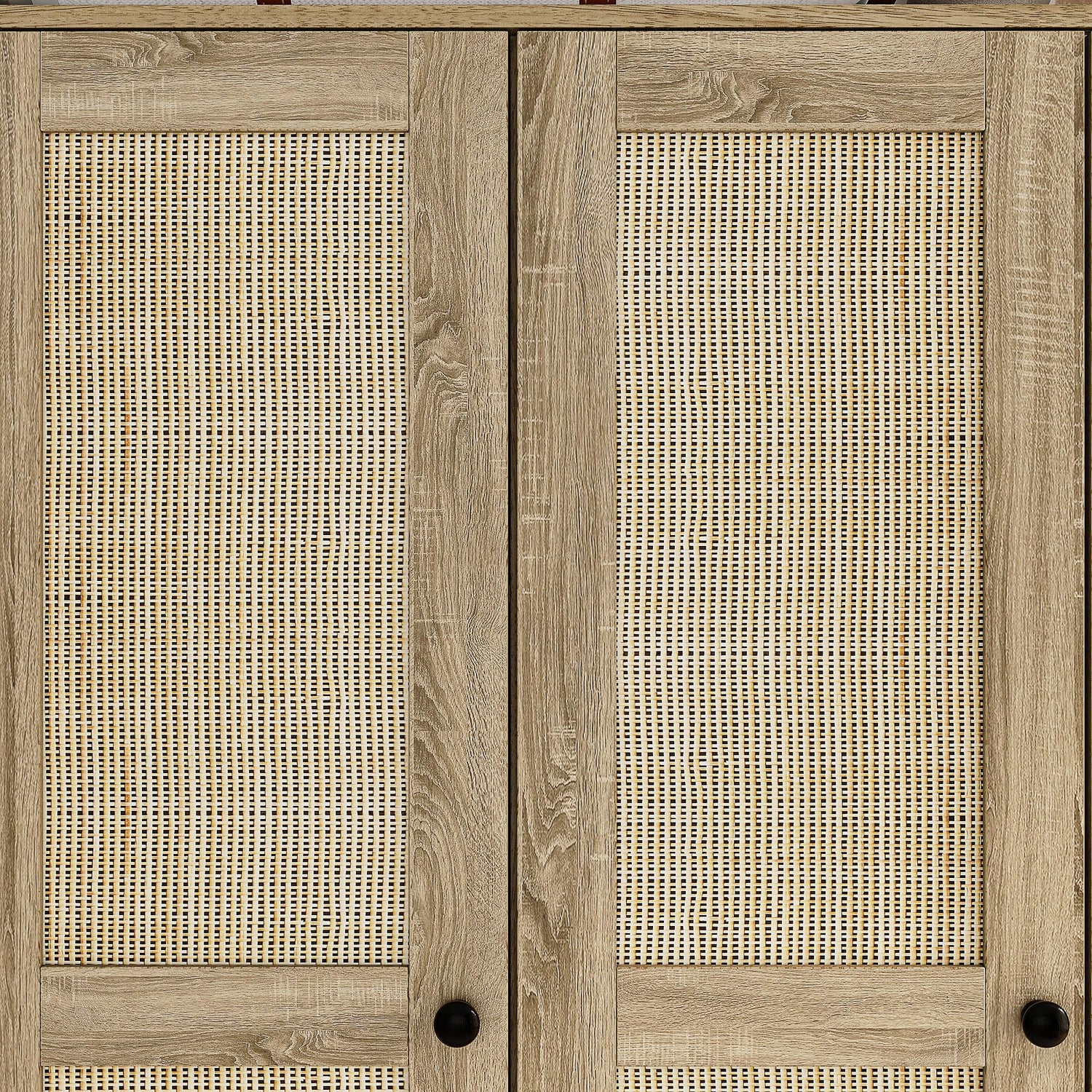 - Stylish Appearance - The light brown wardrobe with rattan doors is veneered with natural wood grains on the panels,and the rattan doors will add retro atmosphere to your room.