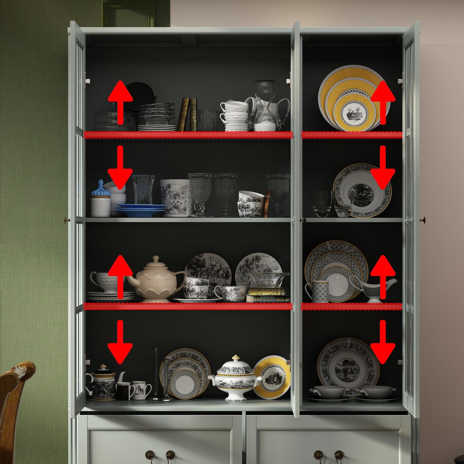- [Multi-Purpose Use]: This green grey bookcase with storage works perfect in many occasions, you can treat it as bookcase, display & curio cabinet, home office file cabinet, dining room buffet sideboard, kitchen pantry cabinet, shoe cabinet, bedroom wardrobe closet and so on