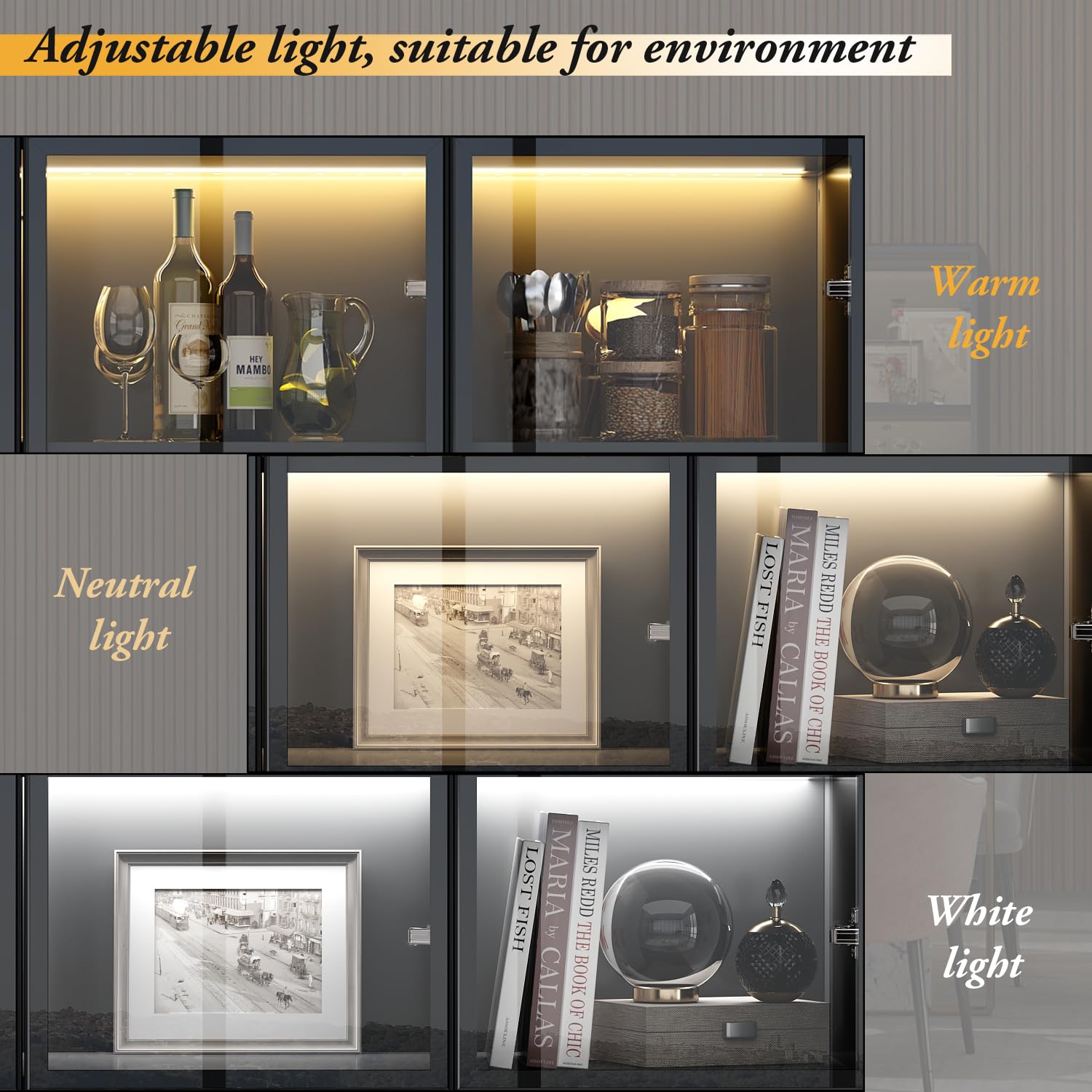 Boasting a sleek black finish, this bookcase is not only a storage solution but also a stunning display cabinet. It features touch control LED lights, allowing you to switch between three captivating colours: warm yellow, natural, and cool white. Illuminate your favourite collections or cherished keepsakes behind the elegant transparent glass doors, creating a sophisticated and inviting atmosphere.