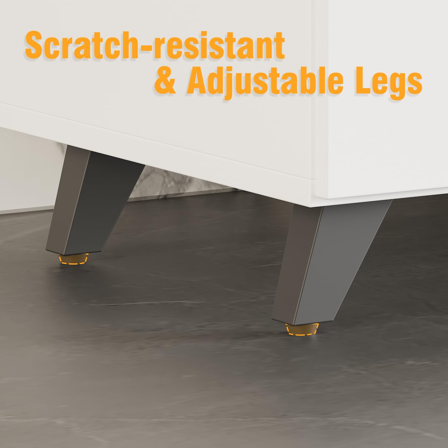 - [Durable Constructions]: This white TV stand is crafted from engineered particle board with strong legs. The drawers come with sliding rails. The smooth finished surface is easy to clean and avoid being hurt by sharp edges