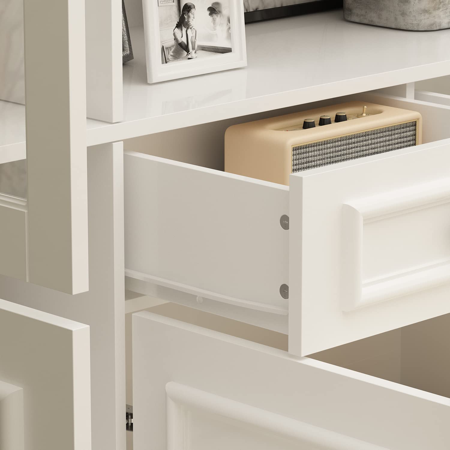 Homsee Elegant Tall Bookcase with Glass Doors, 15 Compartments & Storage Drawers in White