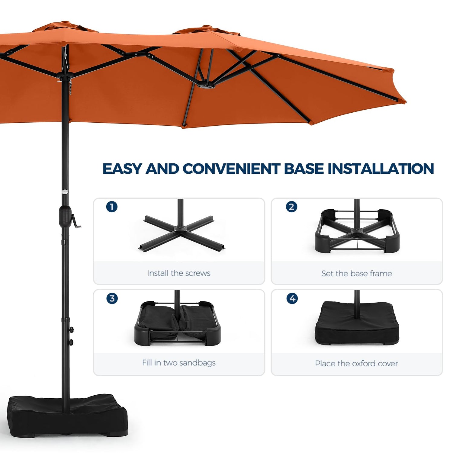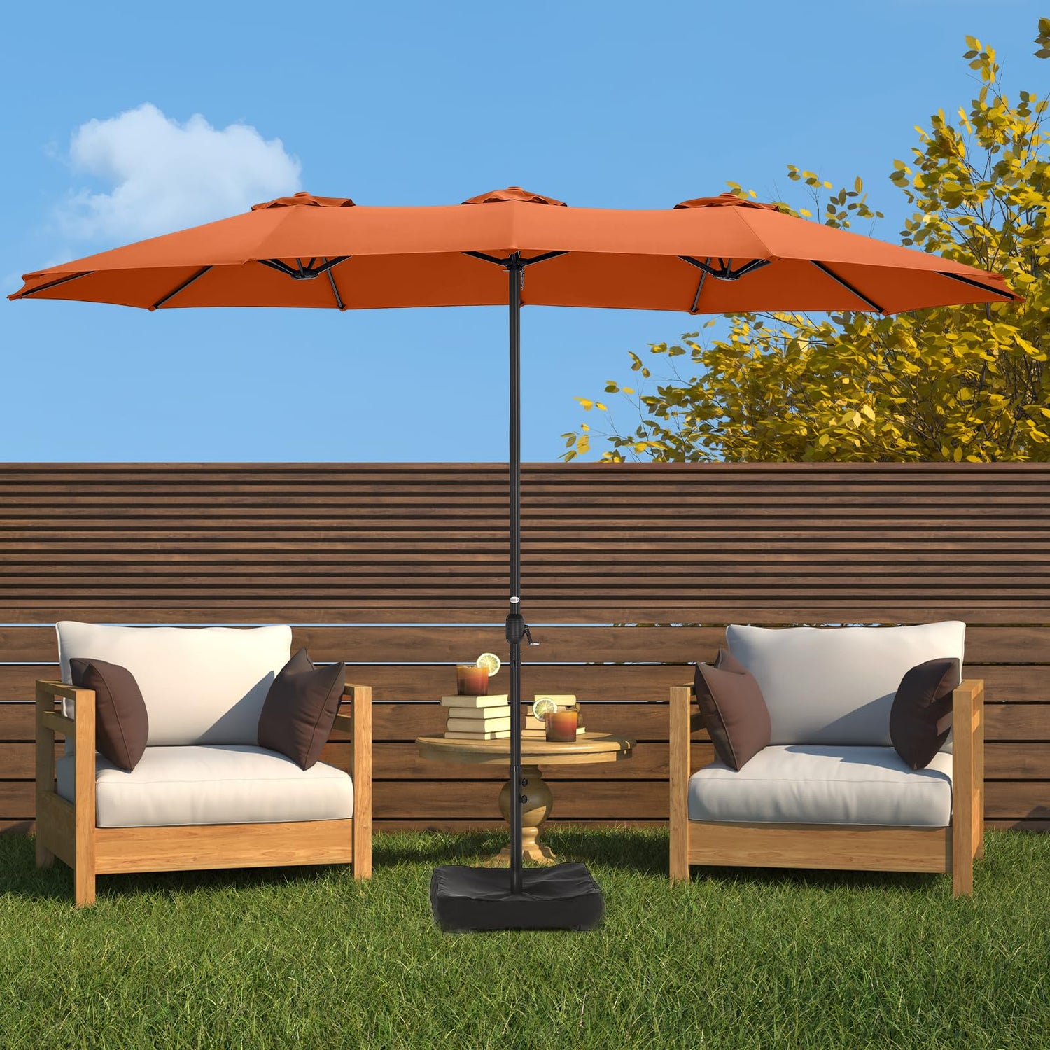 HOMSHADE 15ft Large Patio Umbrellas with 138lbs Base Included - Rectangle Oversized Double Sided Outdoor Umbrella for Market, Deck, Pool, Garden(Orange)