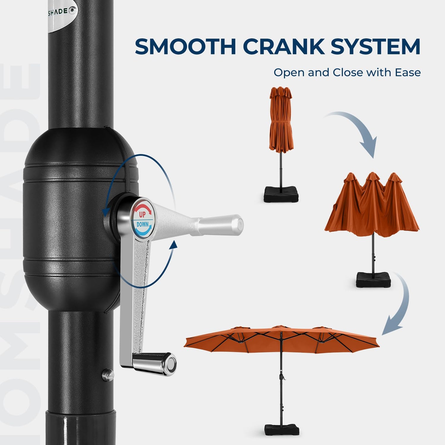 - EASY CRANK: Smooth crank system ensures that opening (clockwise) and closing (counterclockwise) the patio umbrella can be easily accomplished in seconds.