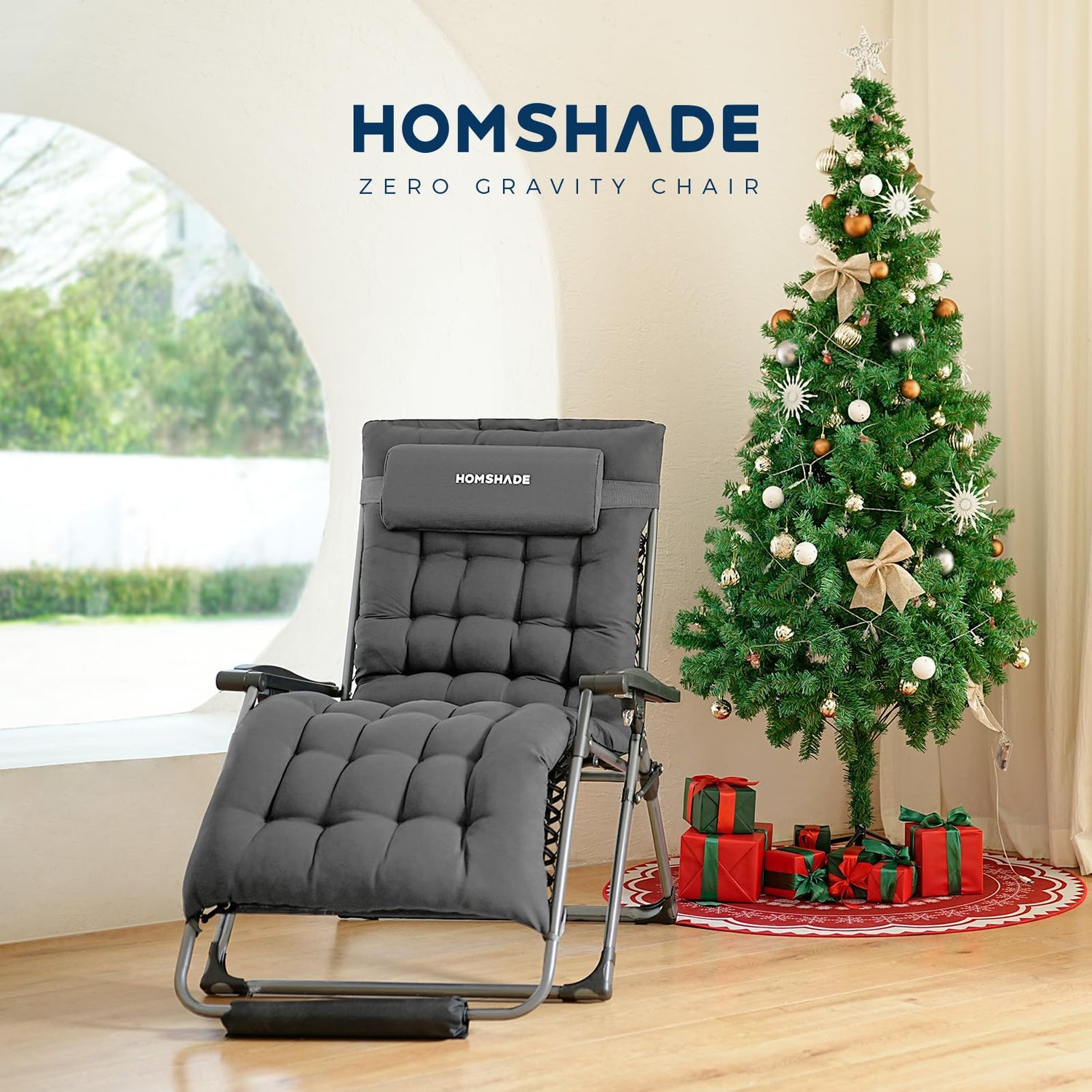 HOMSHADE XXL Zero Gravity Chair with Cushion, 33In Oversized Zero Gravity Lounge Chair, Patio Outdoor Recliner Chair for Indoor Outdoor with Headrest, Cup Holder, Footrest Support 500Lbs, Grey