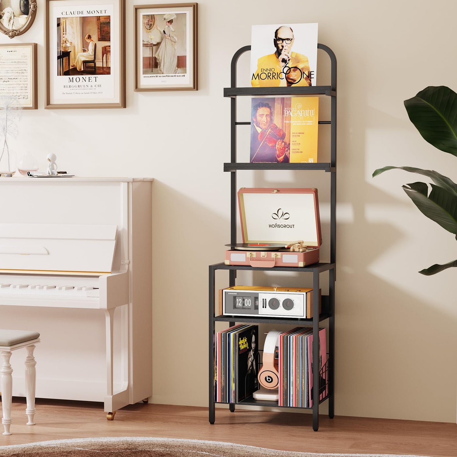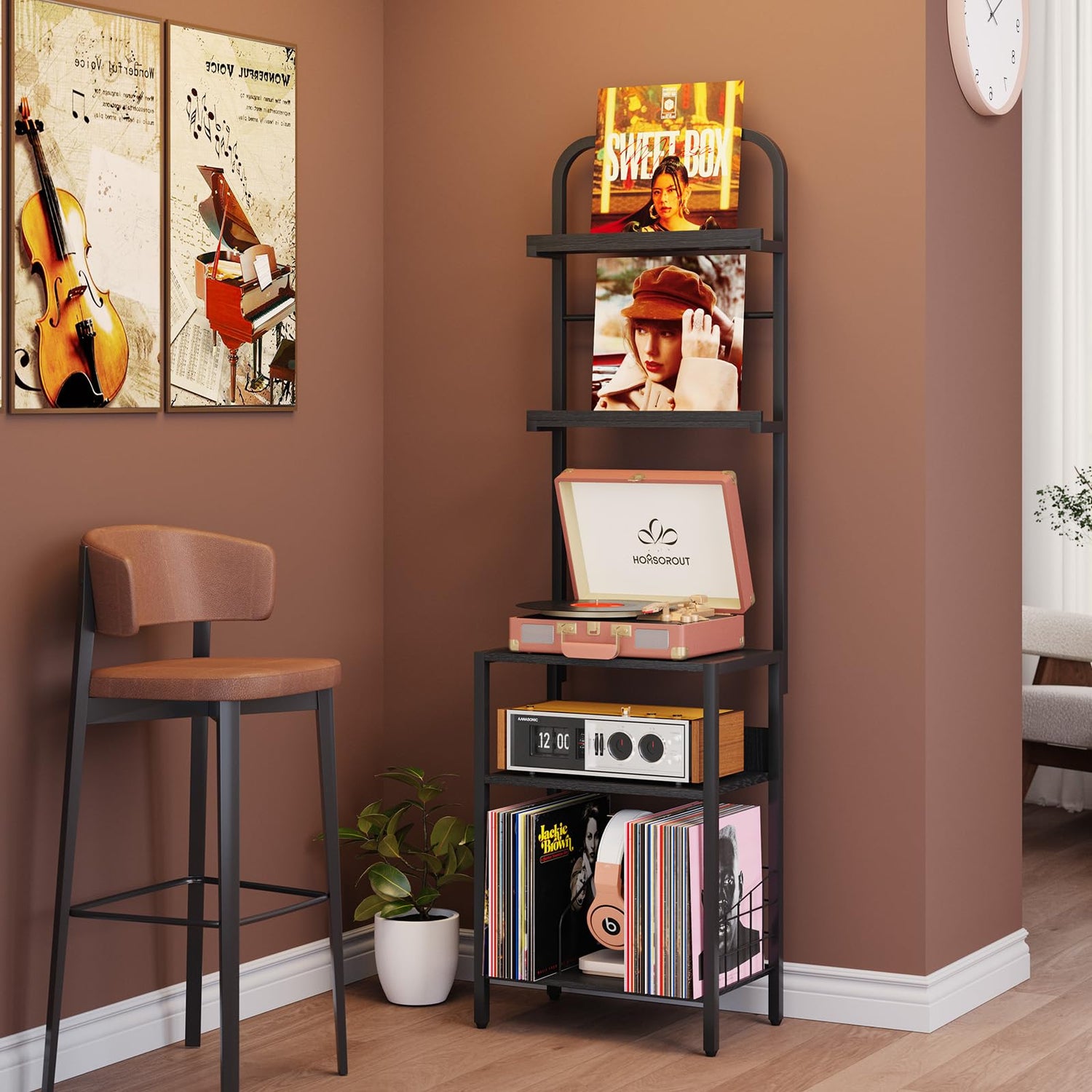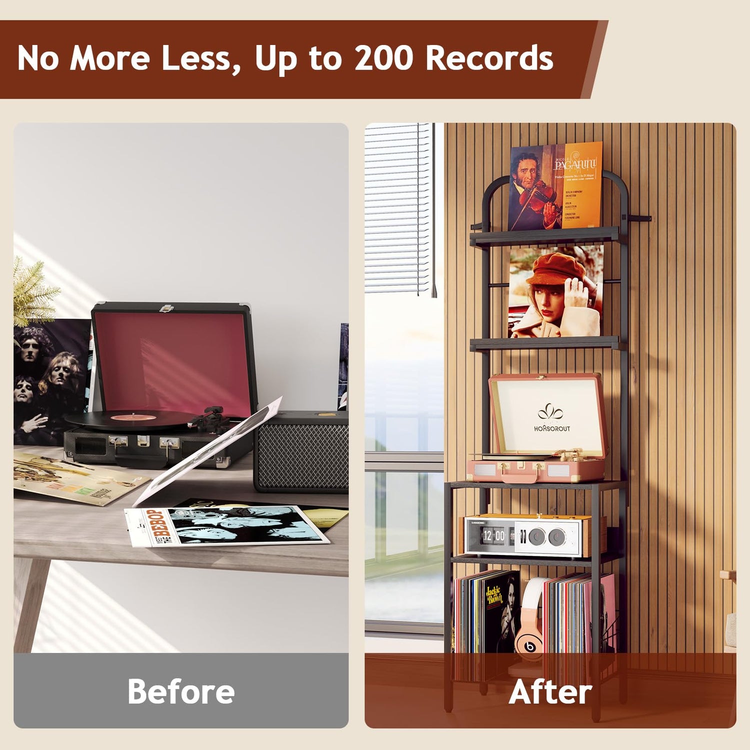 - [Designed for Real Collectors] Let your growing vinyl record storage collection breathe. With five spacious tiers, this turntable stand gives every album a home — no more digging through cluttered bins or piles