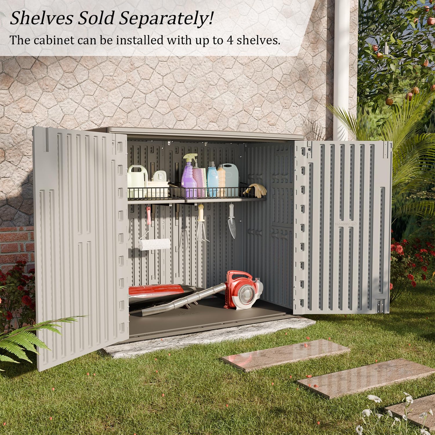 - 【2024 New Desgin】The latest design language, decorated with wood grain panels and paired with light colors, creates a simple and fashionable style that is suitable for most families and successful individuals. I believe using this outdoor cabinet to decorate your yard and garden is a good choice.