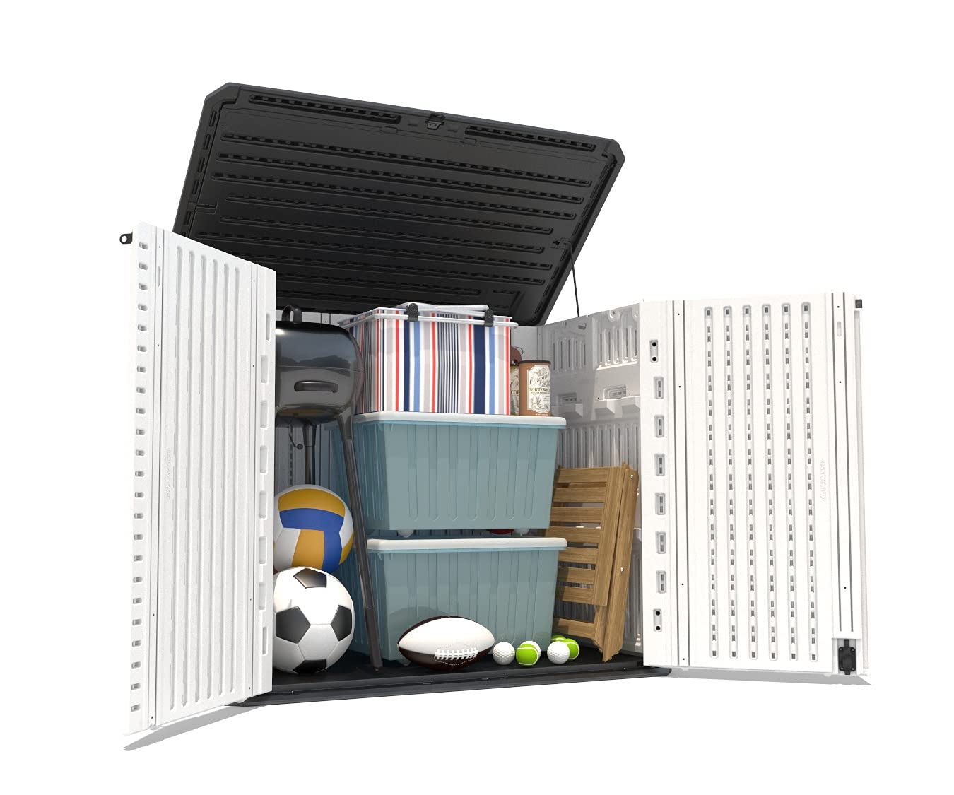 HOMSPARK Storage Shed Weather Resistance, Multi-Purpose Outdoor Storage Cabinet for Backyards and Patios, Horizontal Storage Shed for Lawnmower, Patio Accessories (White 1, Large - 26 cu.ft)