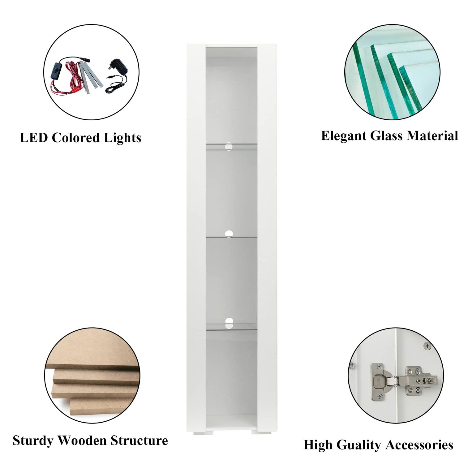 HomVent Modern LED Bookcase Display Cabinet with Glass Doors - Stylish Organiser for Living Room, Bedroom & Office