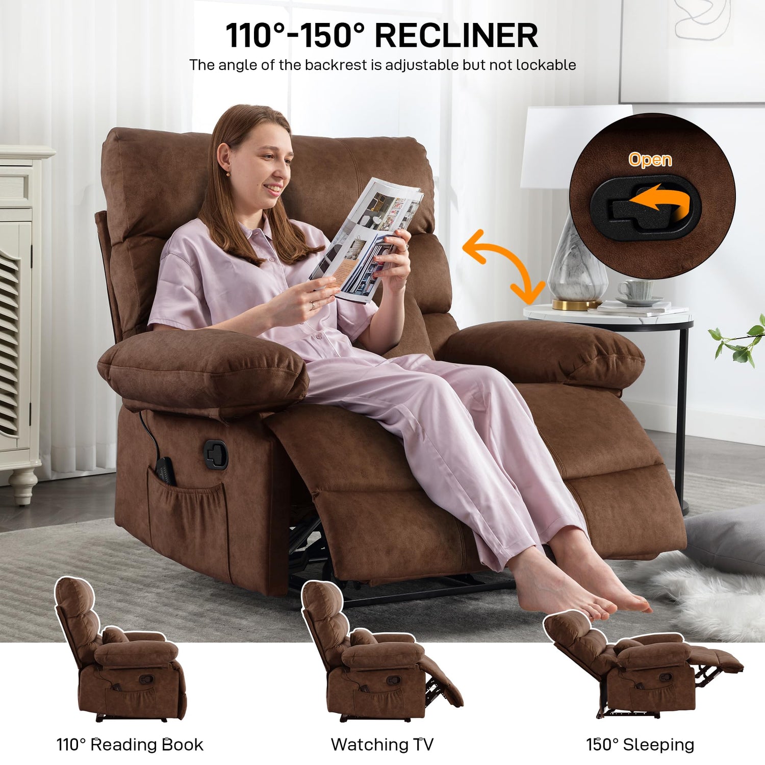 - WIDER RECLINER - The HOMYEDAMIC oversize recliner features a larger metal frame with a seat width of 28 inches (other recliner seats are 21 inches wider), with self-developed foam and highly breathable fabric. Recommended for purchase at 5'1 -5'9 tall.
