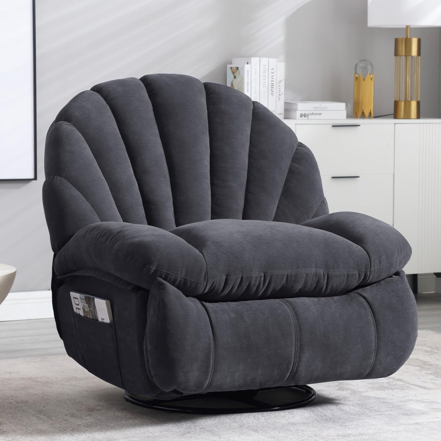 - 【Plush Fabric Swivel Recliner Chair】Soft recliner chair uses premium fleece fabric,Durable recliner chair features all-metal BIFMA-certified frame,contemporary shell-shaped backrest design