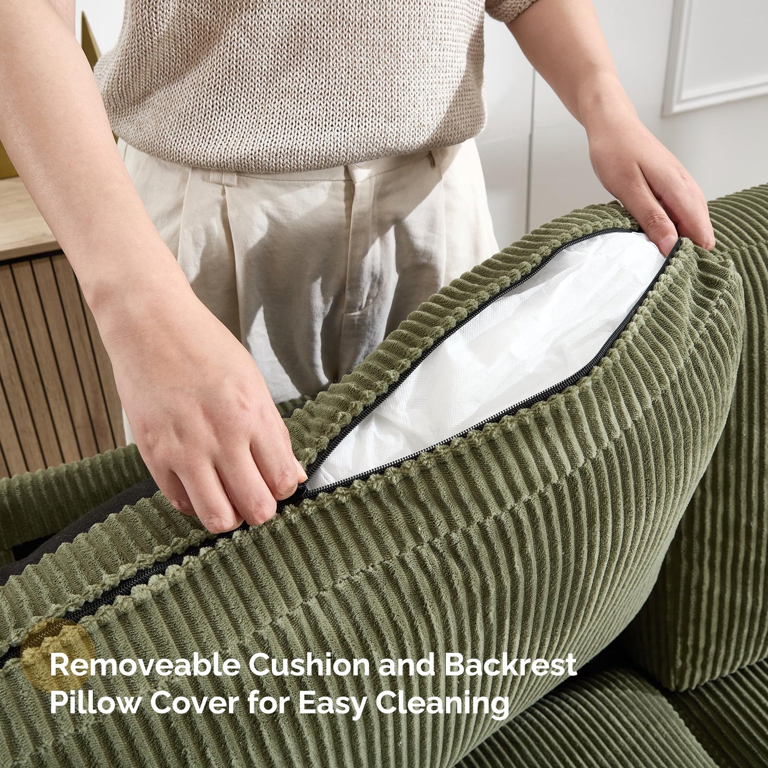 - Corduroy Fabric – This sofa is upholstered in corduroy fabric, offering a soft, cozy feel and a rich texture. Soft to the touch and Pet-friendly. Suitable for creating a cozy, inviting atmosphere in any room