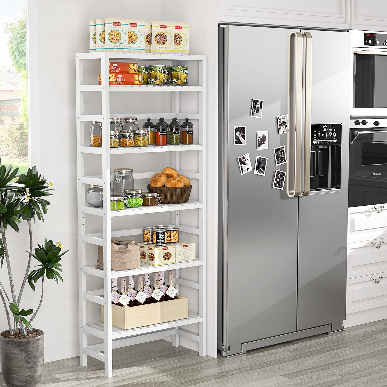 Homykic 6-Tier Adjustable Bamboo Bookcase - 63.4” Tall White Free Standing Storage Shelf