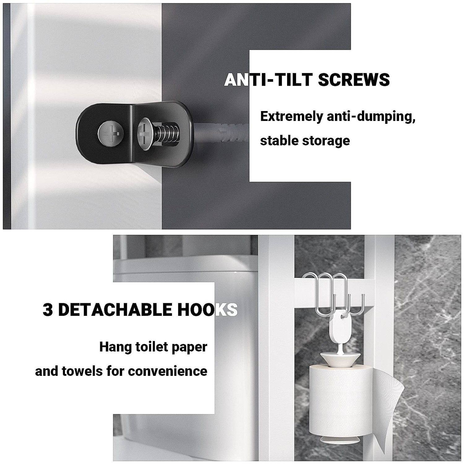 - STABLE CONSTRUCTION - 2 sets of anti-tilt kits for concerning security, protect the toilet storage shelf from waggle and topple over. Adjustable bottom bar for toilets of different heights.