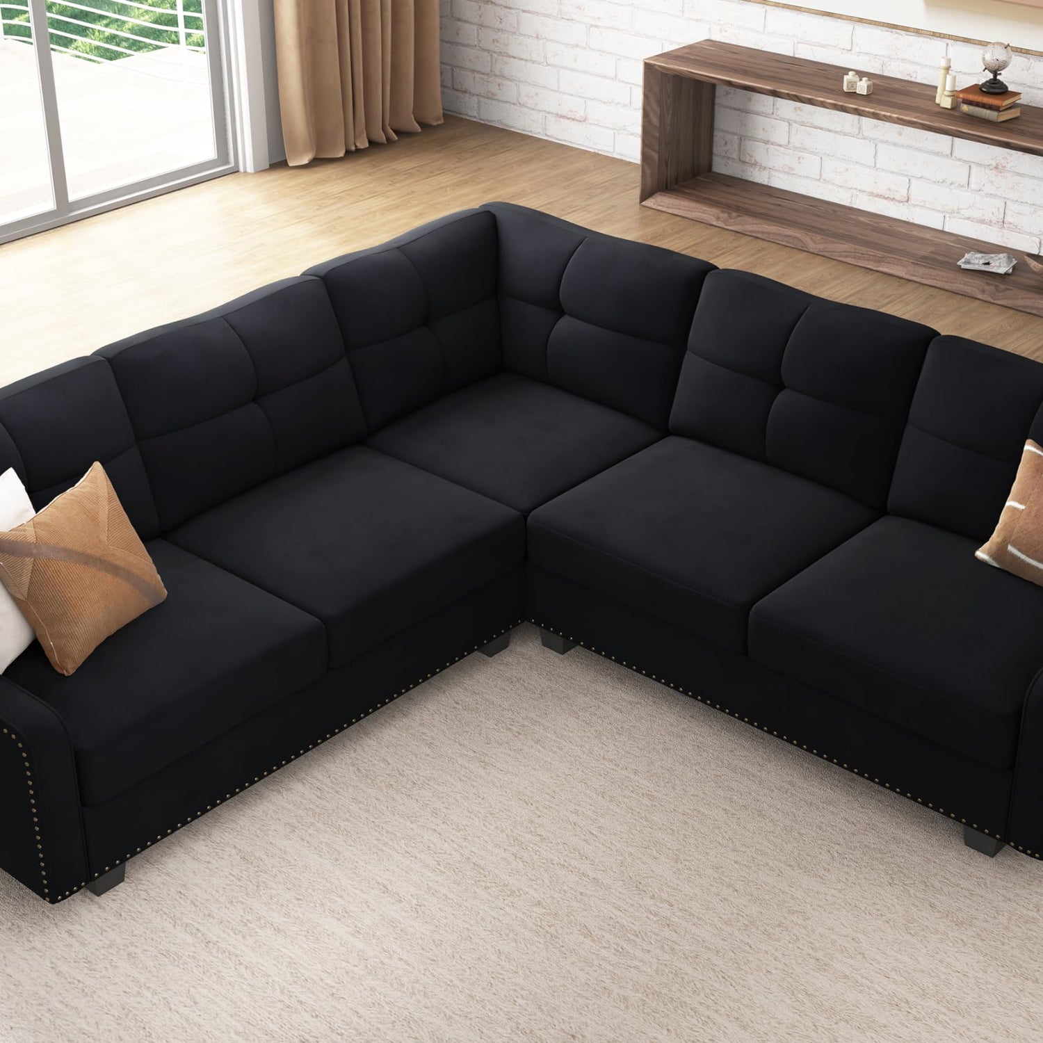 HONBAY Convertible Sectional Sofa L Shaped Couch for Small Apartment Reversible Sectional Couch for Living Room,Velvet Black