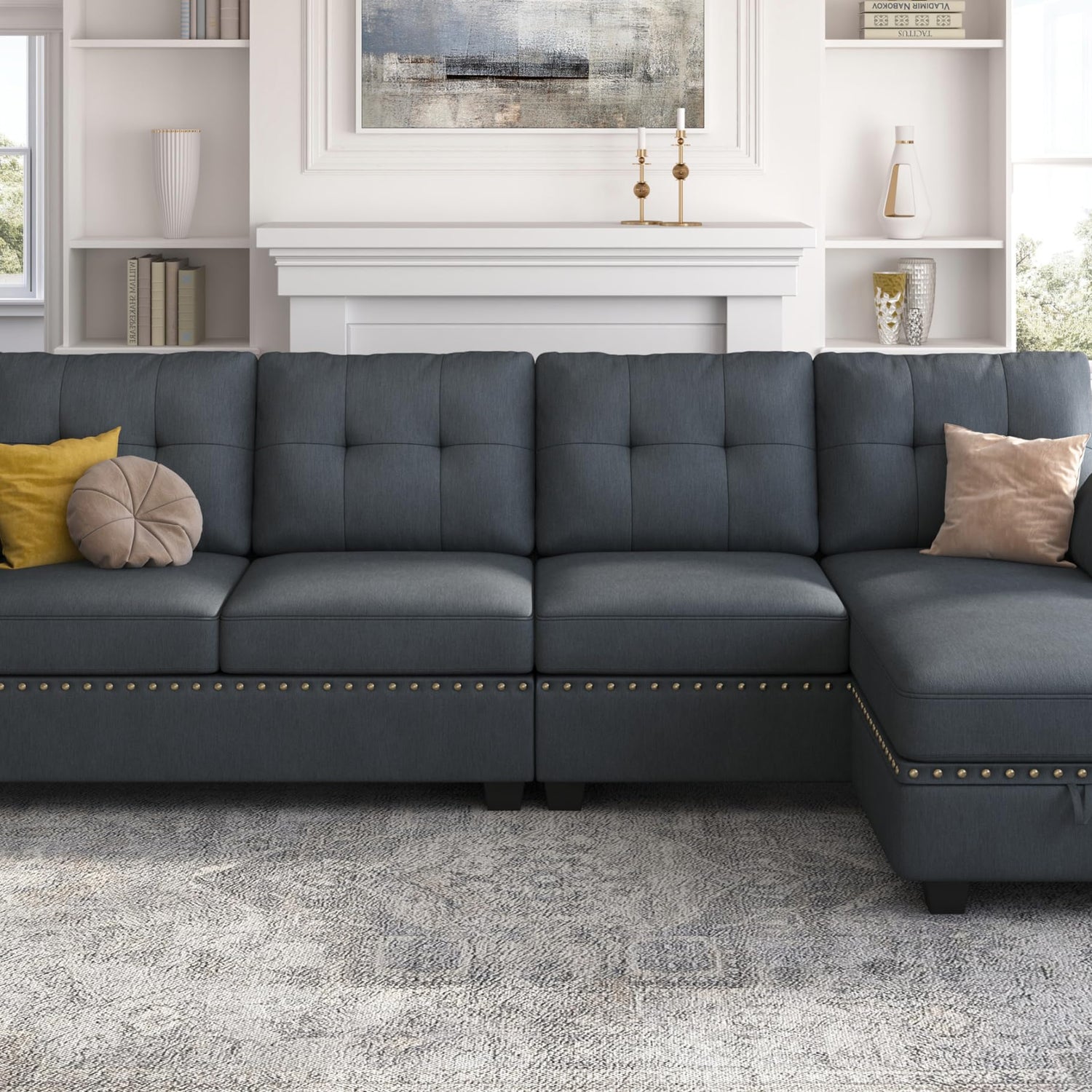 - Fashionable Appearance: HONBAY 4-seat sectional couch sofa with nail-head trim and storage bag