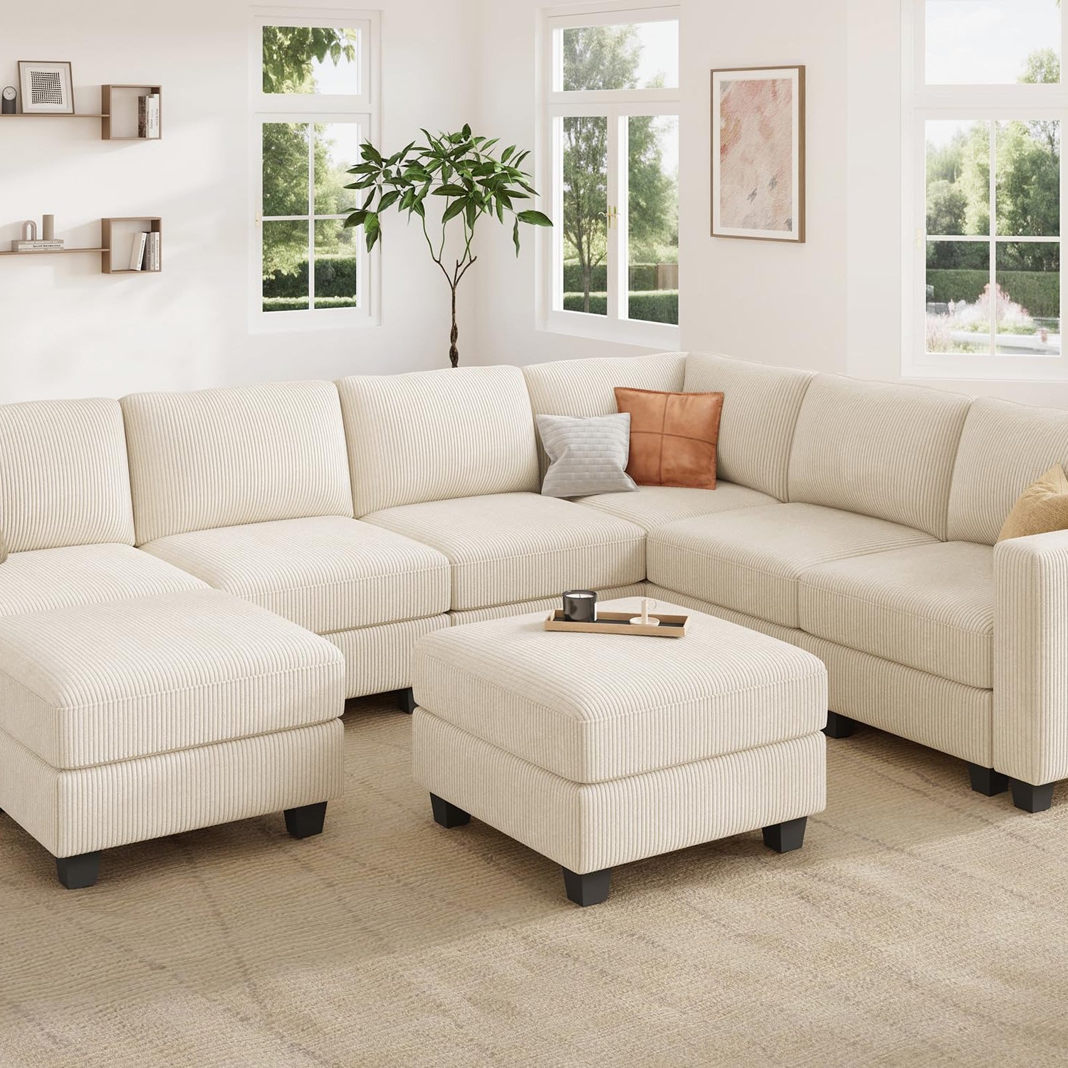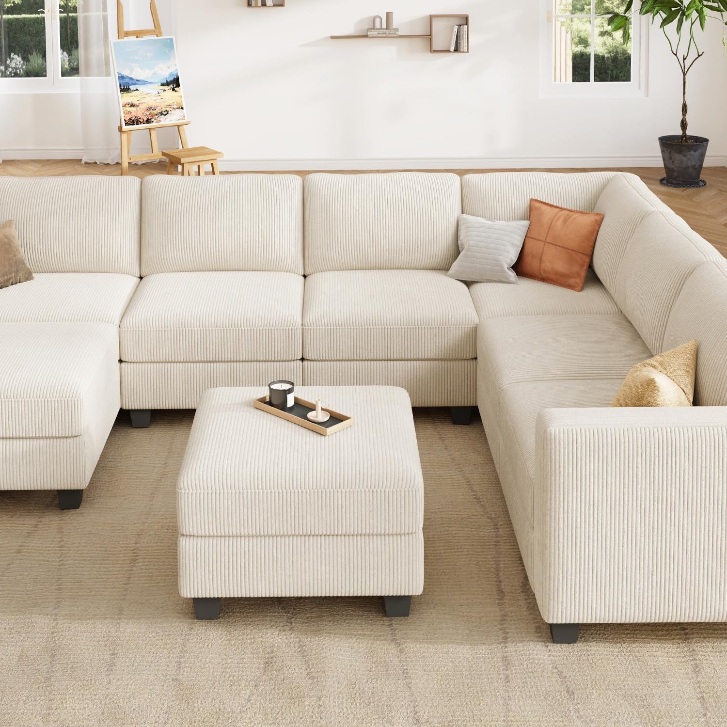 HONBAY Corduroy Sectional Couch with Storage U Shaped Sectional Sofa Modular Sectional Couches for Living Room, Beige